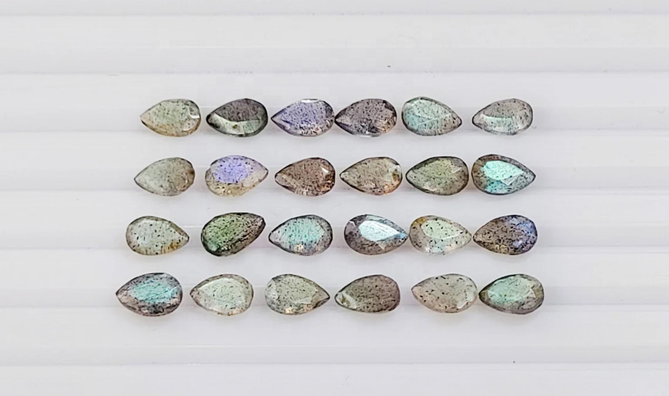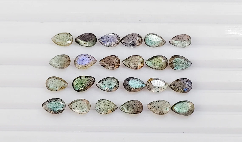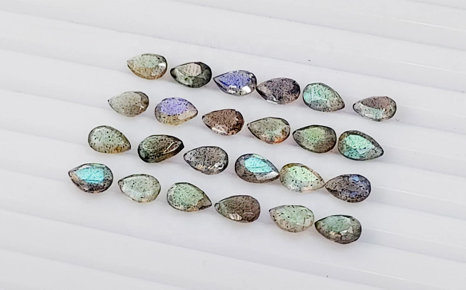 หินลาบราโดไรต์ธรรมชาติ ทรงลูกแพร์ เจียระไนเหลี่ยม