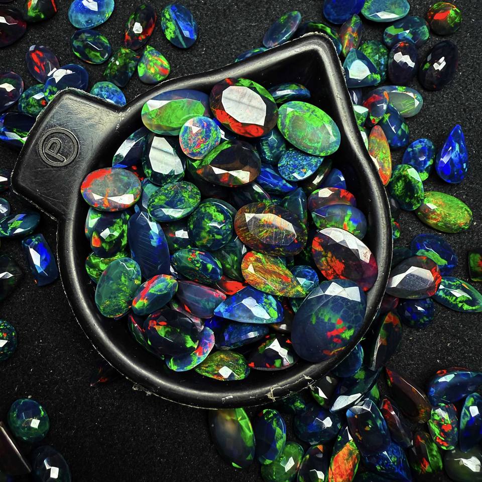พลอยโอปอลตัดไฟสีดำหลายสีคุณภาพสูงขนาด5-20มม. โอปอลไฟทรงหลวมพลอยได้รับการรับรองจากผู้ผลิต AAA