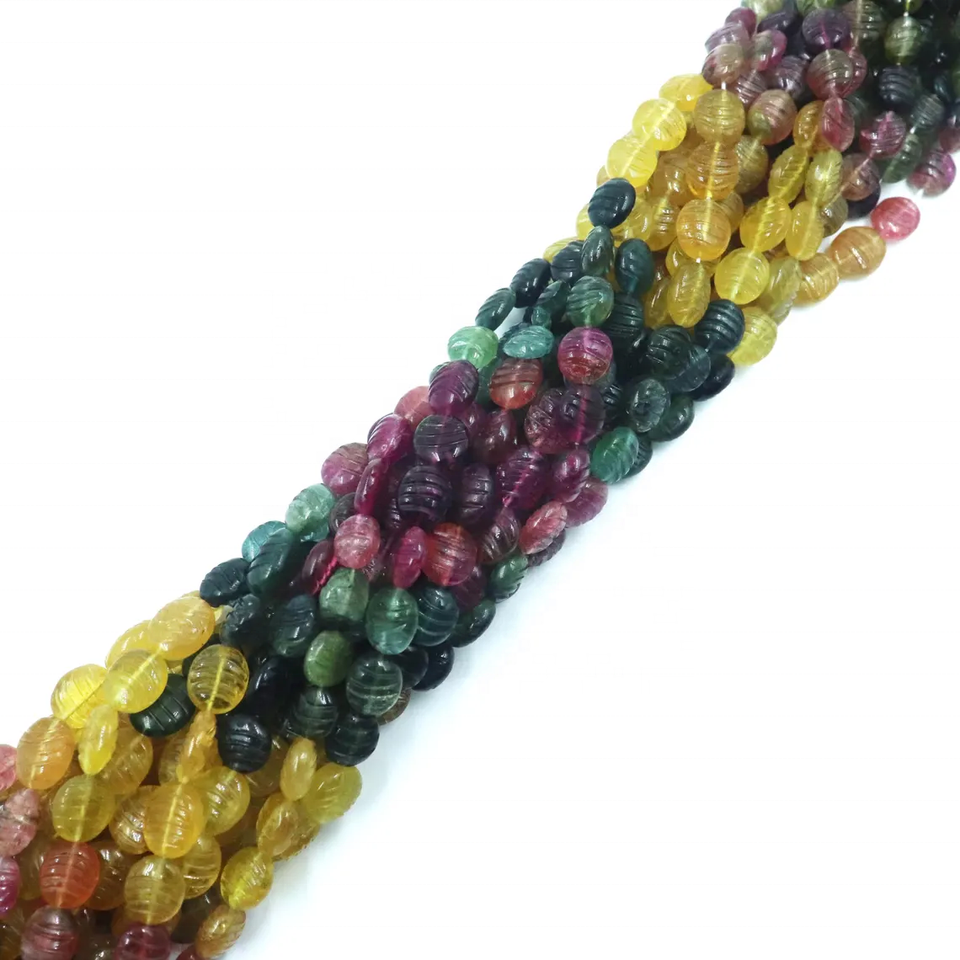 ลูกปัดทรงรีแกะสลักด้วยมือจากทัวร์มาลีนหลากสี