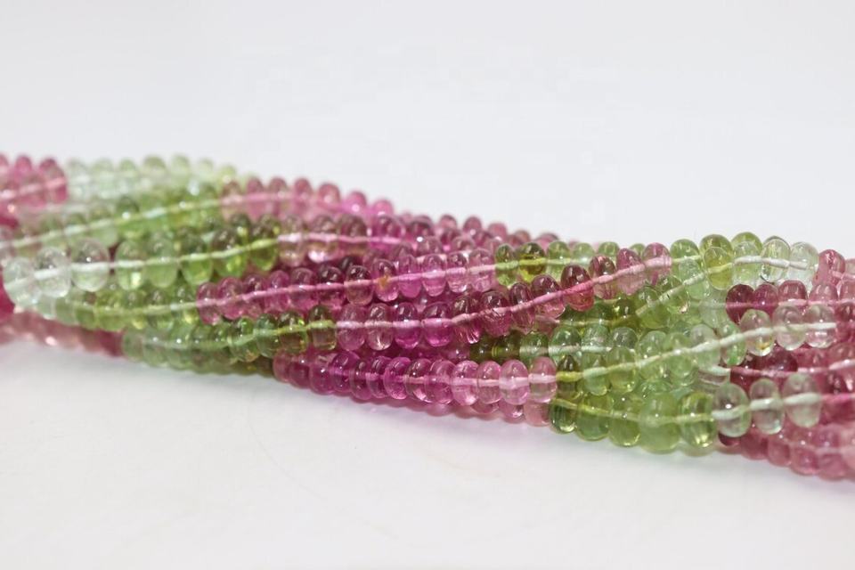 ลูกปัดทัวร์มาลีนทรงรอนเดลคุณภาพ AAA หลายสี ขนาด 14 นิ้ว 5-6 มม. สายร้อยธรรมชาติ ทัวร์มาลีนสีแตงโม สำหรับทำเครื่องประดับ