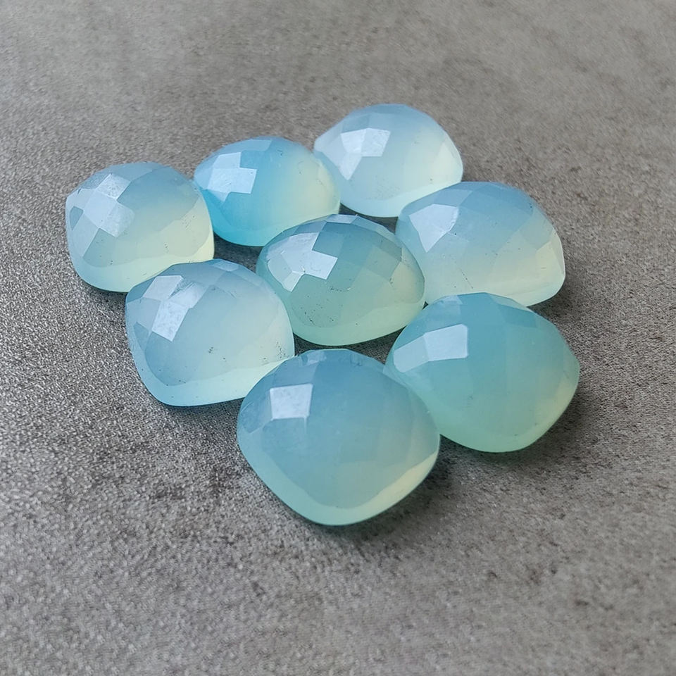 AAA + คุณภาพธรรมชาติเบาะสี่เหลี่ยมสีฟ้า Chalcedony สีฟ้า Chalcedony ตรวจสอบรูปร่างแบนกลับปรับเทียบขนาดทั้งหมดที่มีอยู่