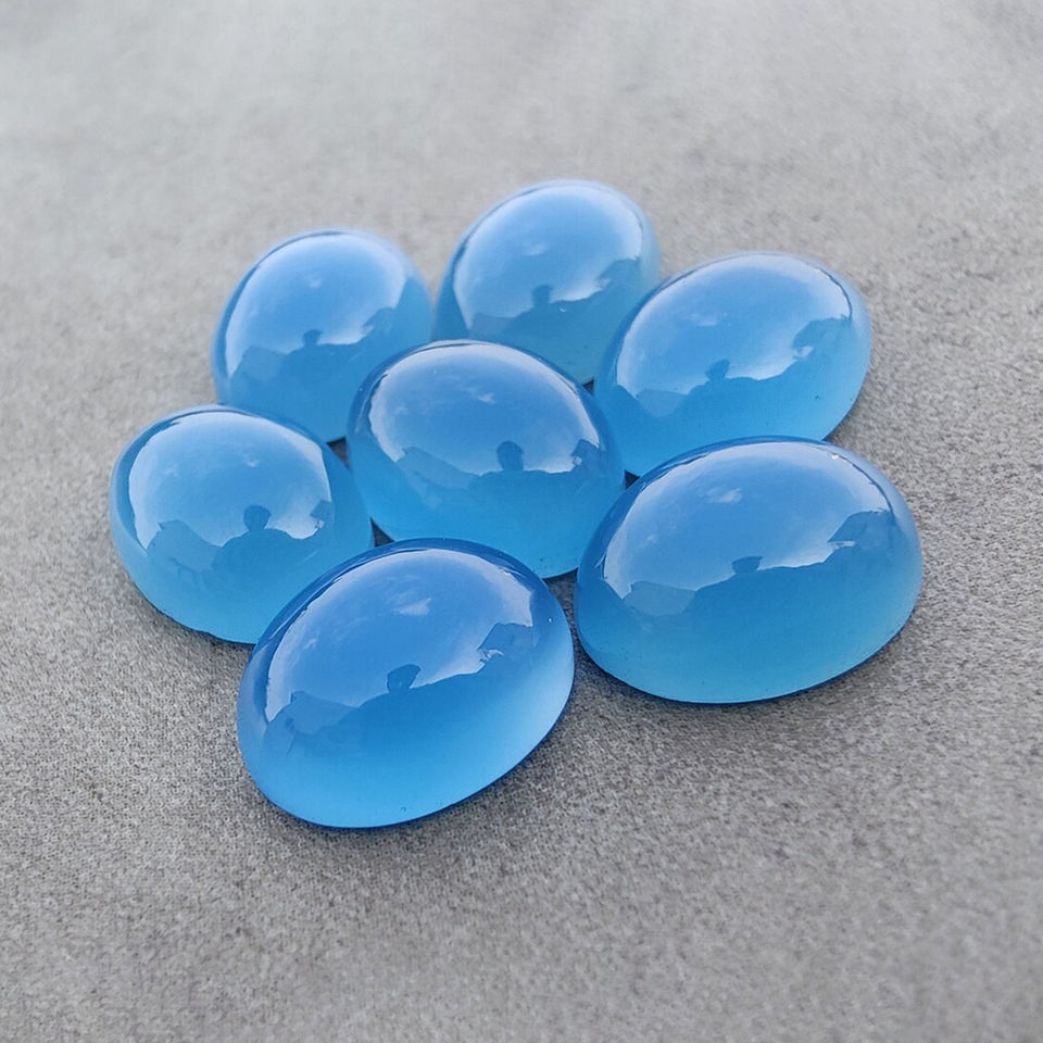 อัญมณีคาโบชองสีฟ้าธรรมชาติคุณภาพสูง AAA + อัญมณีเจียระไนทรงวงรีตัดแบนมีหลายขนาดขายส่ง