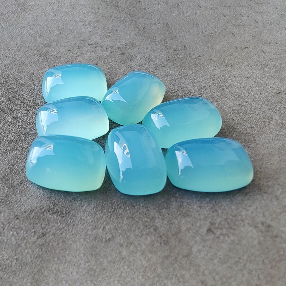 AAA + พลอยคาลซิโดนีสีน้ำเงินธรรมชาติทรงสี่เหลี่ยมผืนผ้าเบาะทรงหลังแบนปรับเทียบขนาดได้
