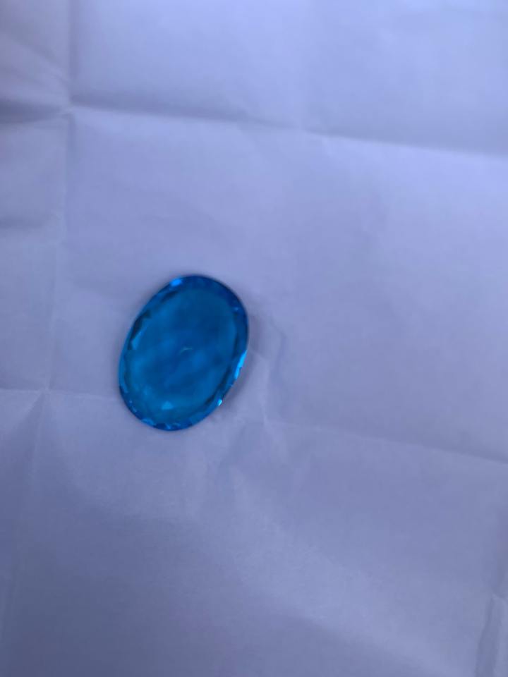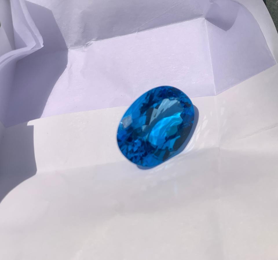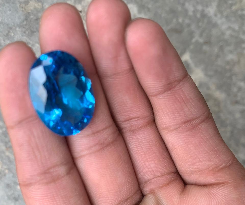 พลอยบลูโทแพซสีฟ้าธรรมชาติคุณภาพ AA+ ทรงรี ขนาด 38.45 กะรัต สำหรับทำเครื่องประดับ