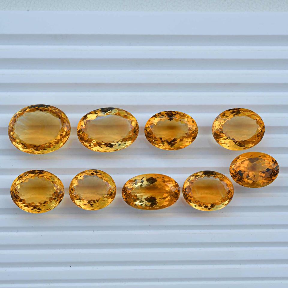 อัญมณีแท้ทรงวงรีเหลี่ยมเพชรพลอยสีเหลืองทองธรรมชาติขนาด AAA