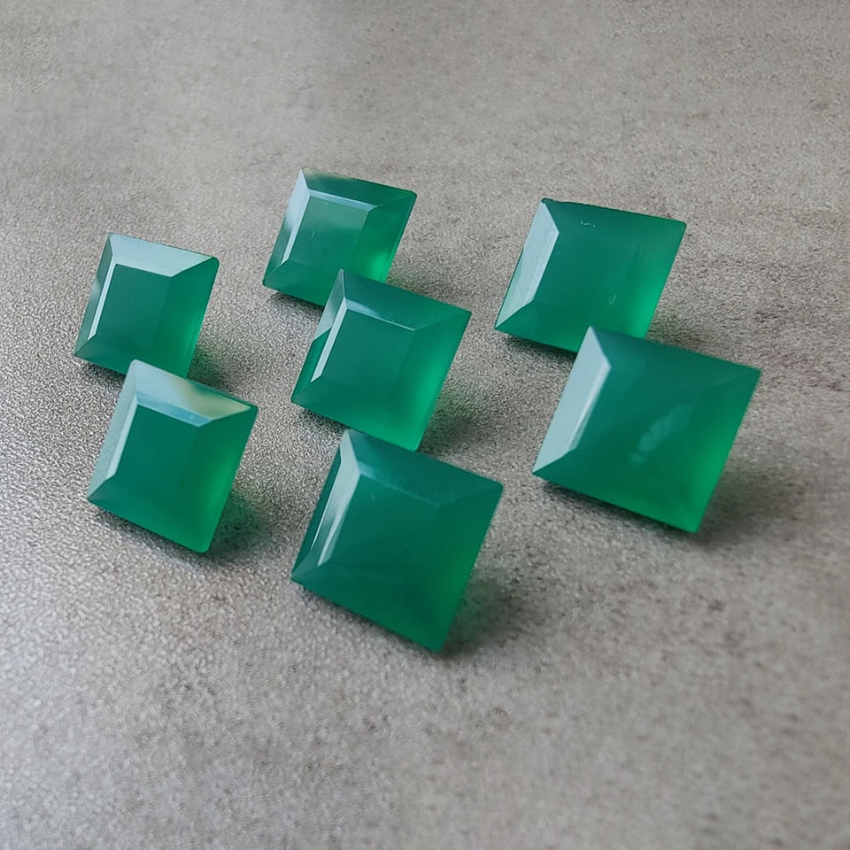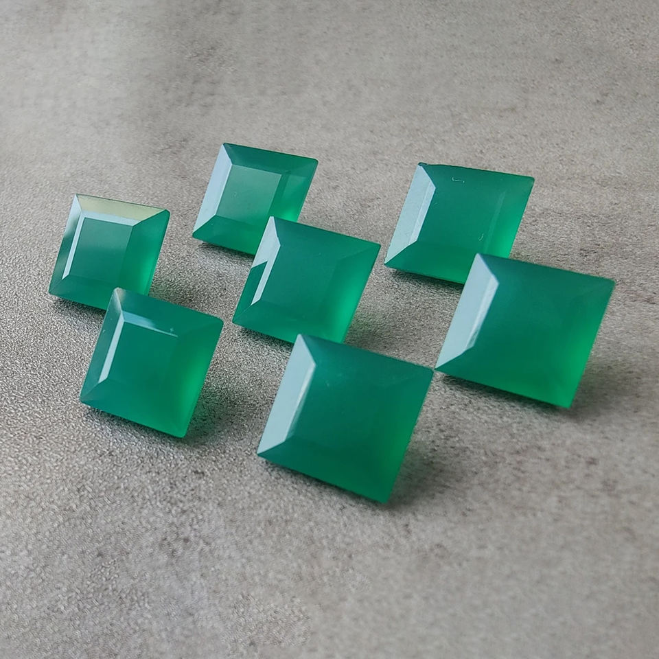 อัญมณีสีเขียวธรรมชาติคุณภาพ AAA + พลอยพลอยสีเขียวแบบหลวมทรงสี่เหลี่ยมเจียระไนแบนราบใช้ได้ทุกขนาดขายส่ง