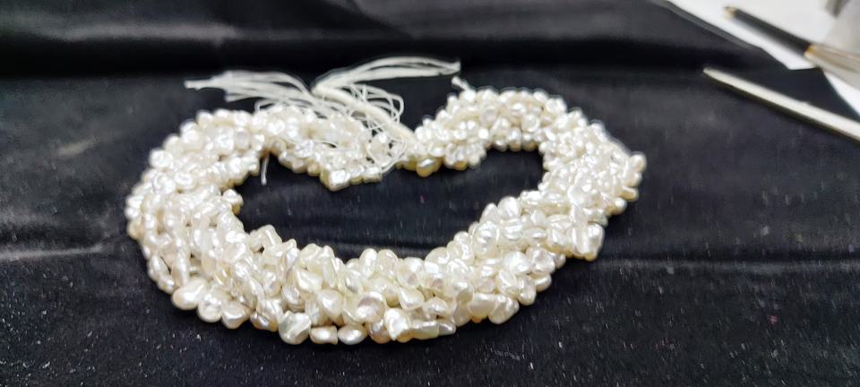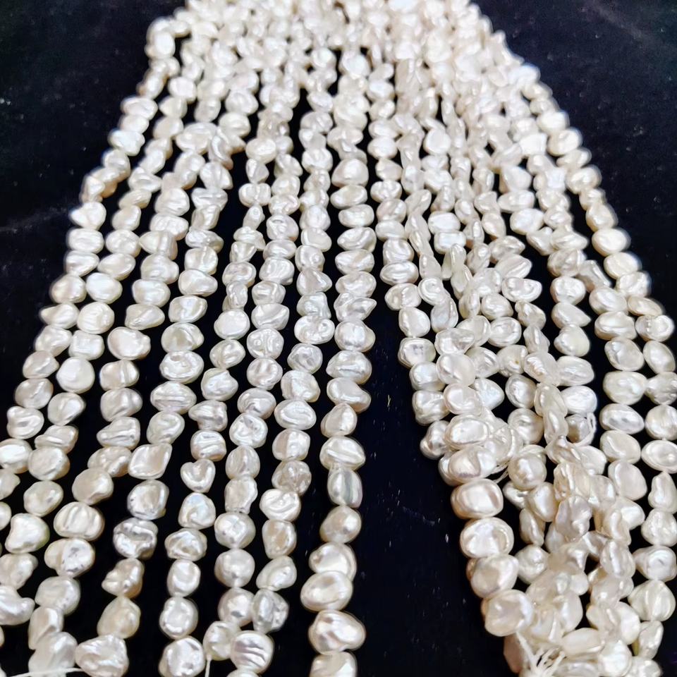 ไข่มุกเคชิธรรมชาติคุณภาพ AAA ขนาด 5*7 มม. ความยาว 16 นิ้ว ร้อยเป็นเส้นสำหรับทำเครื่องประดับ ราคาขายส่ง