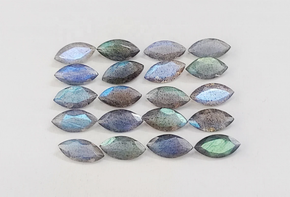 พลอยลาบราโดไรต์เจียระไนเหลี่ยมทรงมาร์คีส์