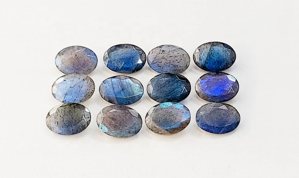 หินลาบราดอไรต์ธรรมชาติคุณภาพ AAA รูปทรงวงรีเหลี่ยมเพชรพลอย ขนาด 14*10 มม. แหวนลาบราดอไรต์ พลอยสำหรับทำเครื่องประดับ
