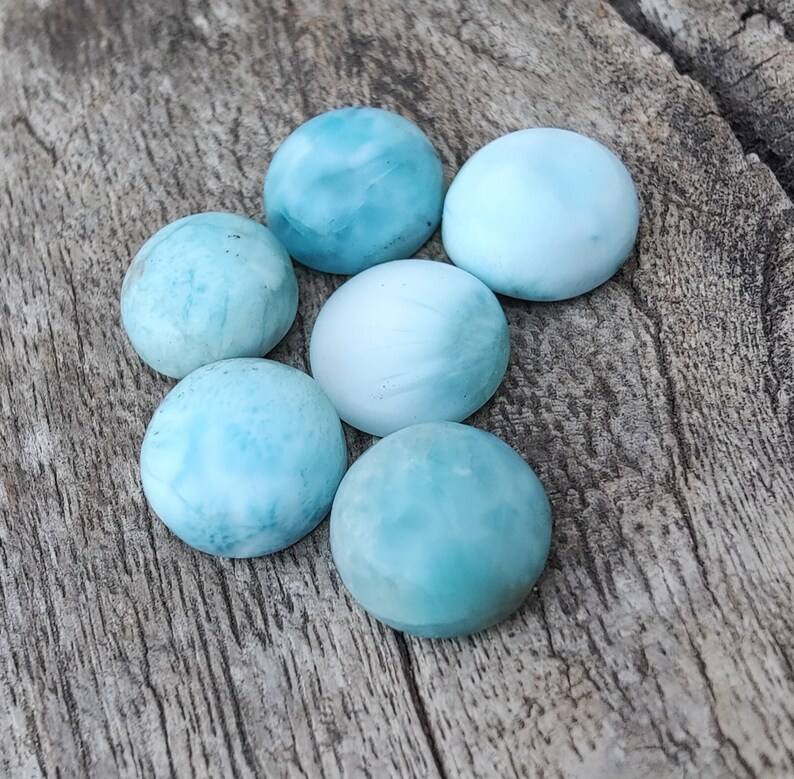 AAA+ Quality Natural Larimar Round Shape Cabochon Flat Back Calibrated Wholesale Gemstones, Custom Sizes Available