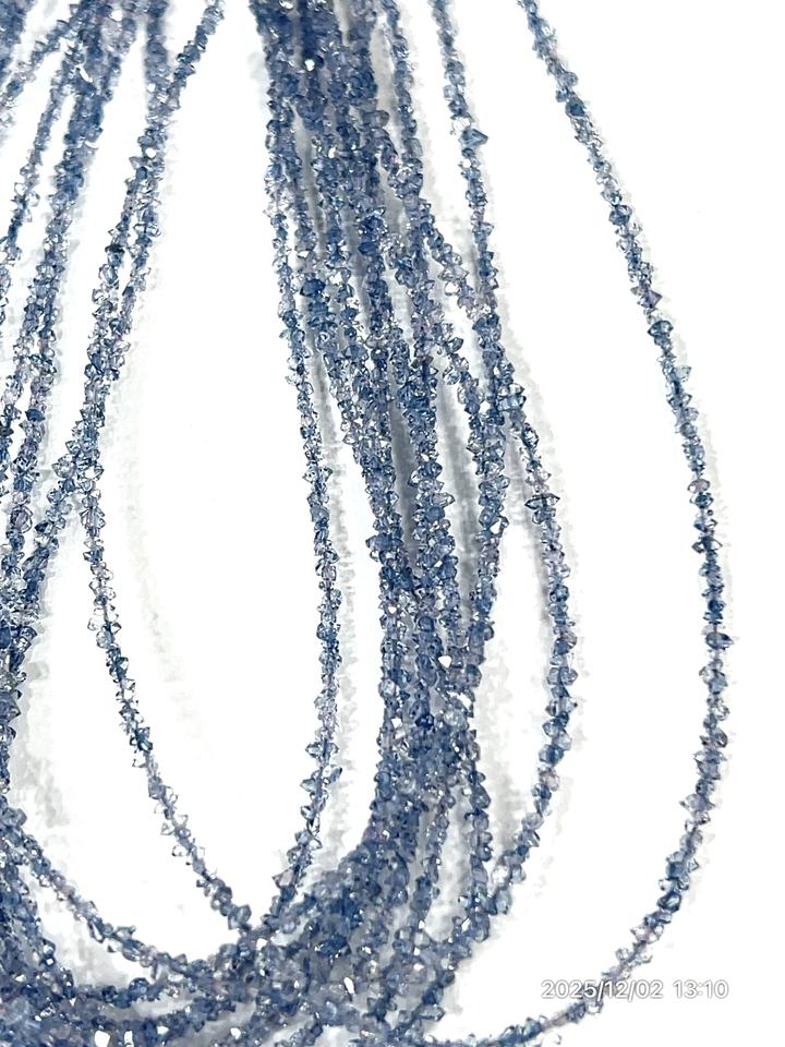 ลูกปัดควอตซ์เคลือบเพชรเฮอร์คิมาร์ สีไอโอไลต์สีฟ้าอ่อนธรรมชาติ คุณภาพ AAA ขนาด 2-3 มม.