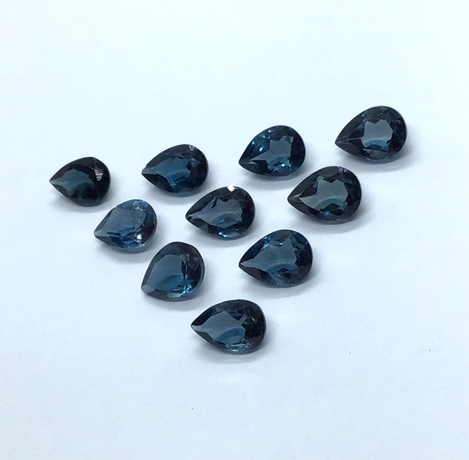 พลอยโทแพซลอนดอนบลูธรรมชาติคุณภาพ AAA รูปทรงลูกแพร์เจียระไน 7x5 มม. พลอยหลวม ยี่ห้อ SGM ผ่านการรักษาด้วยรังสี สำหรับผู้ผลิตเครื่องประดับ