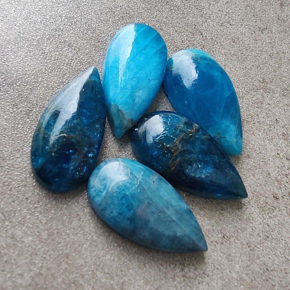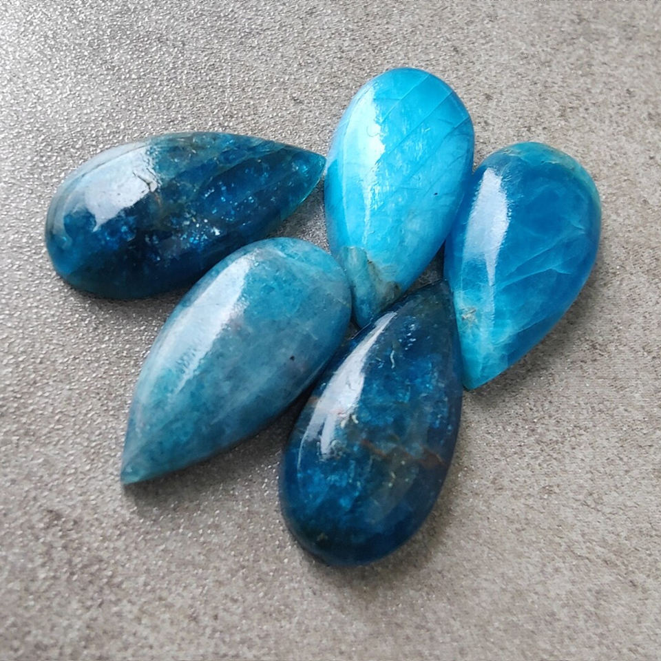 อัญมณีอะพาไทต์จากนีออนธรรมชาติคุณภาพ AAA อัญมณีขนาดใหญ่ลูกแพร์ & ทรงหยดน้ำตาสีเขียวปรับเทียบหลังแบนมีให้เลือกทุกขนาด