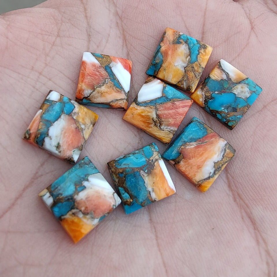 AAA + พลอยสีเทอร์ควอยส์เทอร์ควอยซ์ทรงสี่เหลี่ยมเจียระไนหลังแบนปรับเทียบอัญมณีหลวมทุกขนาด