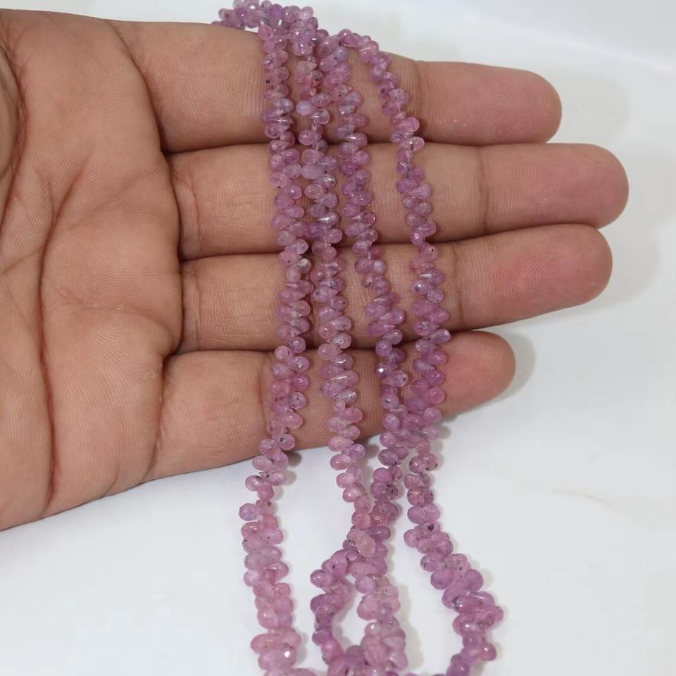 ลูกปัดแซฟไฟร์สีชมพูธรรมชาติคุณภาพ AAA รูปทรงหยดน้ำเหลี่ยมเพชรพลอย ขนาด 2.5x3-3.5x5 มม. ลูกปัดบริโอเล็ตสำหรับทำเครื่องประดับ