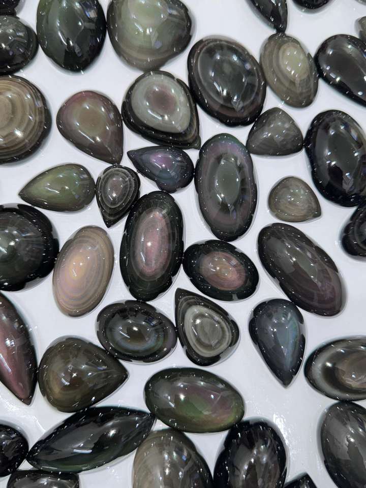 จี้อัญมณีสีรุ้งออบซิเดียนธรรมชาติคุณภาพ AAA + พลอยสีเขียวประดับอัญมณีหลวมสำหรับเครื่องประดับที่ดีสำหรับจี้ต่างหู