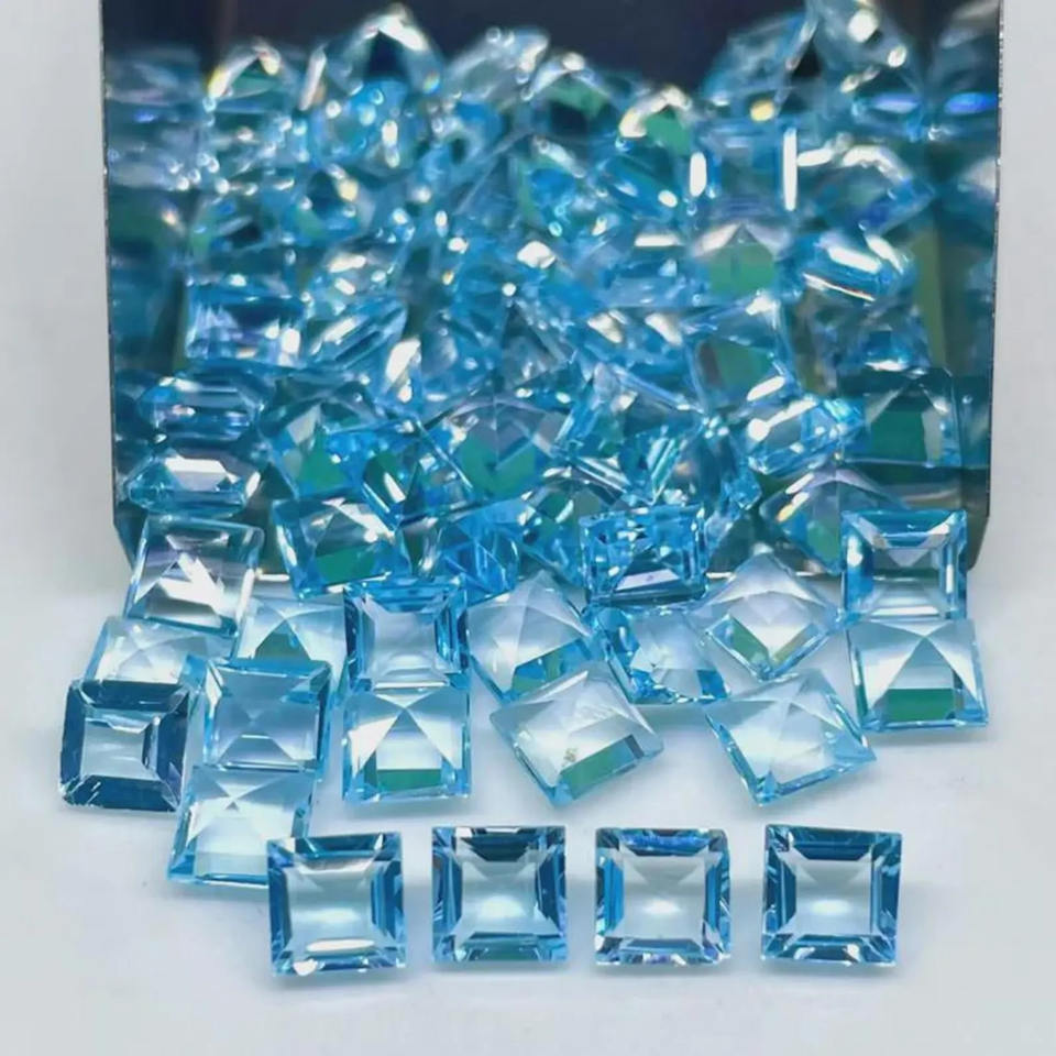 พลอยโทแพซสีฟ้าธรรมชาติคุณภาพ AAA ทรงเหลี่ยมขนาด 11x11 มม. สำหรับทำเครื่องประดับ ขายส่ง