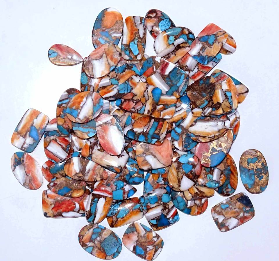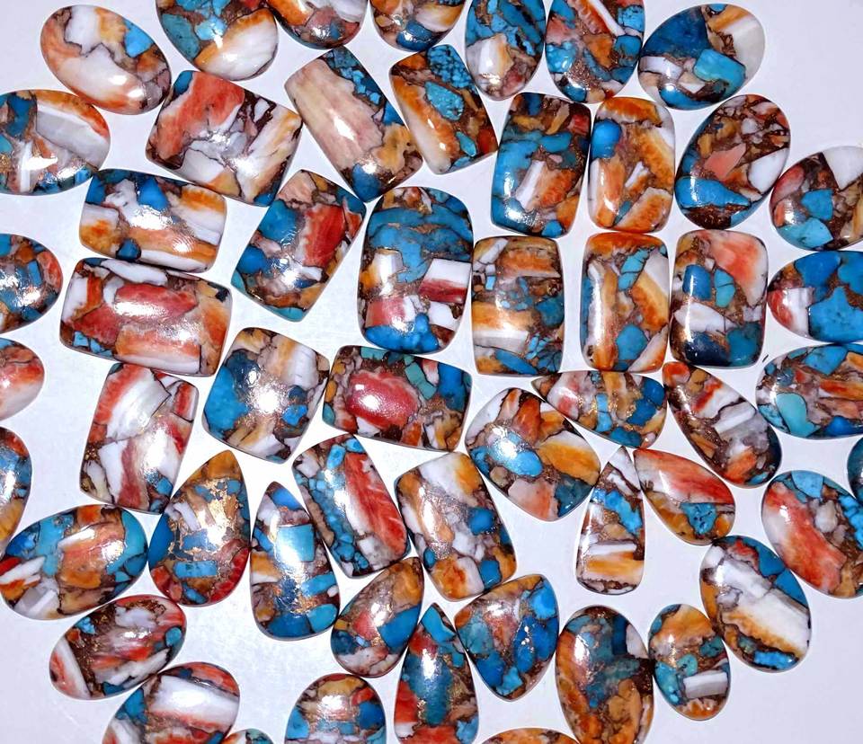 AAA + พลอยหอยนางรมหนามธรรมชาติทำจากทองแดงเทอร์ควอยซ์ทรงหลวมอัญมณีละเอียดขนาดฟรีไซส์