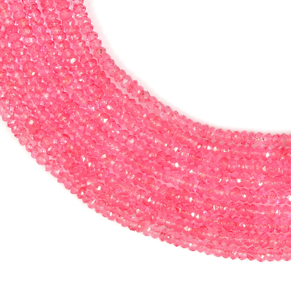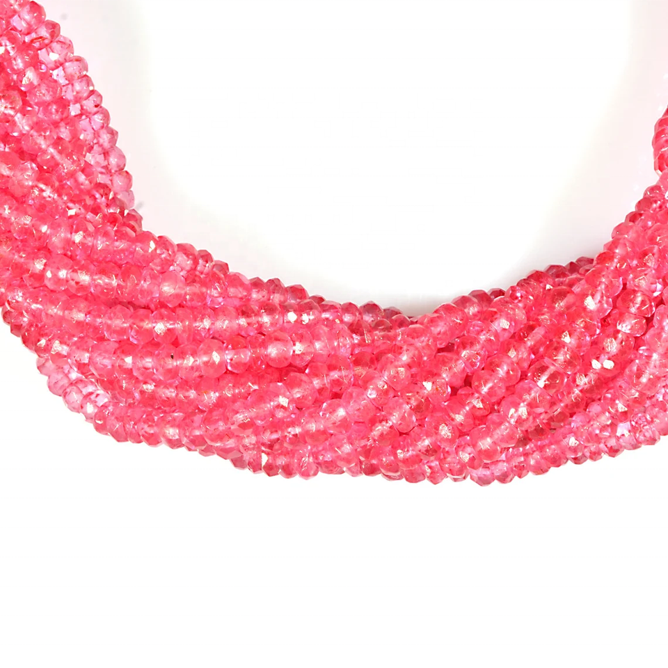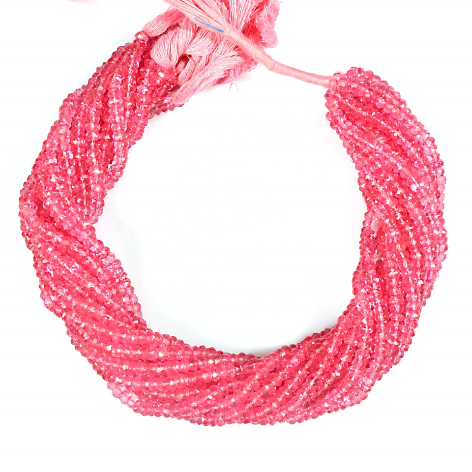 ลูกปัดโทแพซสีชมพูคุณภาพ AAA ทรงรอนเดลเหลี่ยมเพชร ขนาด 4 มม. ความยาว 13 นิ้ว สำหรับทำเครื่องประดับ