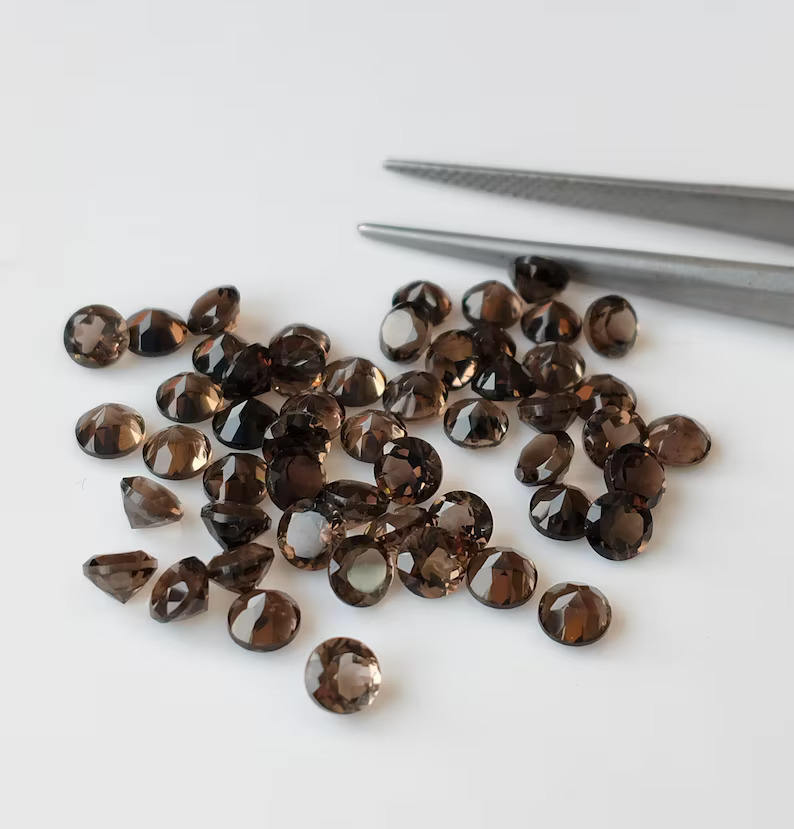 ควอตซ์อัญมณีหลวมแร่ควอทซ์สีธรรมชาติประกายประกายตัดตามธรรมชาติขนาด5x5มม. สีน้ำตาลผลิตในอินเดียสำหรับการทำเครื่องประดับ