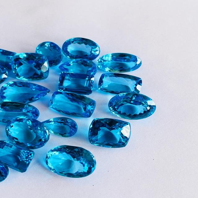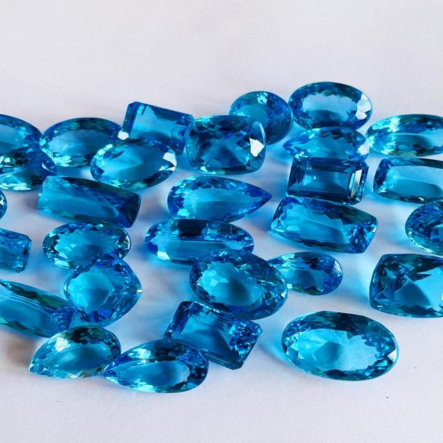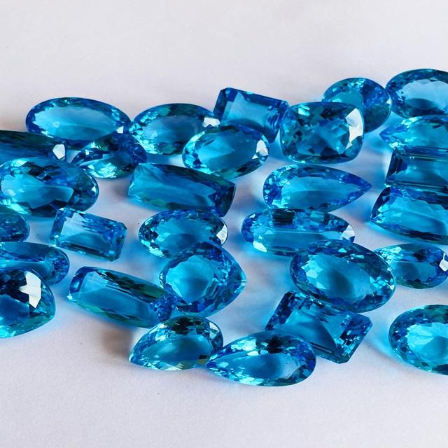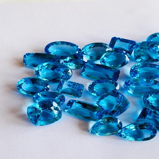 AAA พลอยบราซิลเลี่ยนให้ความร้อนด้วยบุษราคัมสีฟ้าจากสวิสสำหรับทำเครื่องประดับได้รับการรับรองว่ามีจำนวนจำกัด