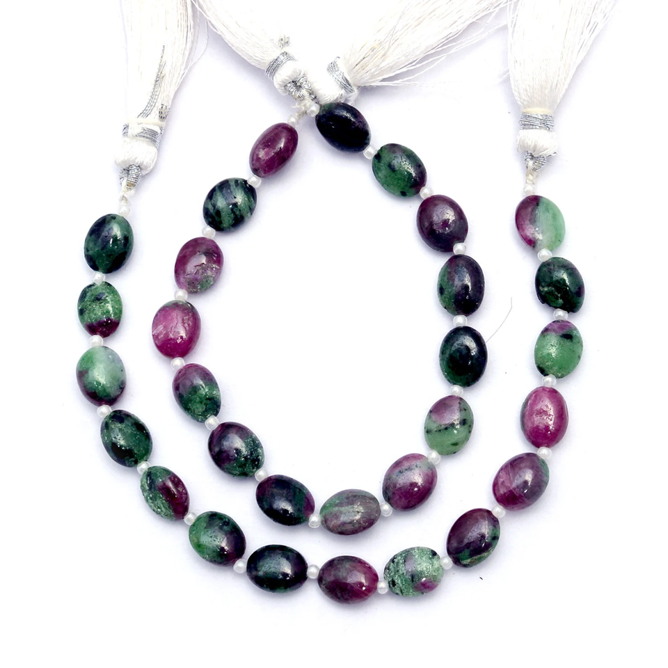 ลูกปัดทรงรีทรงรีขนาด6x9มม. เพชรทับทิม Zoisite พลอยสังเคราะห์จากธรรมชาติลูกปัดรูปไข่ทรงรีหลวมสำหรับการทำเครื่องประดับ
