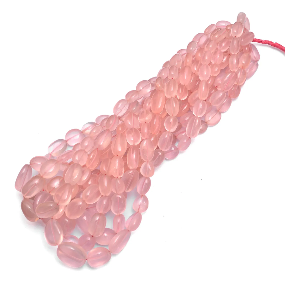 AAA โรสควอตซ์9x10mm-13x18mm ก้อนกลมลูกปัดควอตซ์สีชมพูอ่อนธรรมชาติทรงไข่อัญมณีกึ่งมีค่าสำหรับเครื่องประดับ