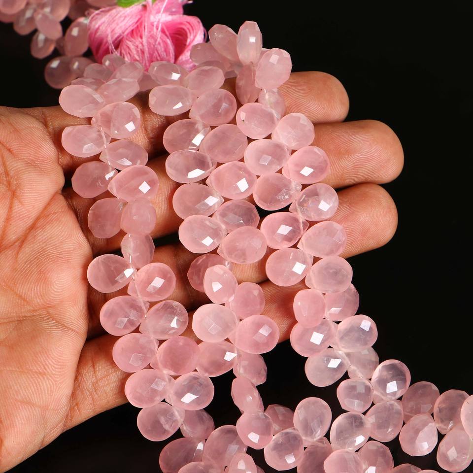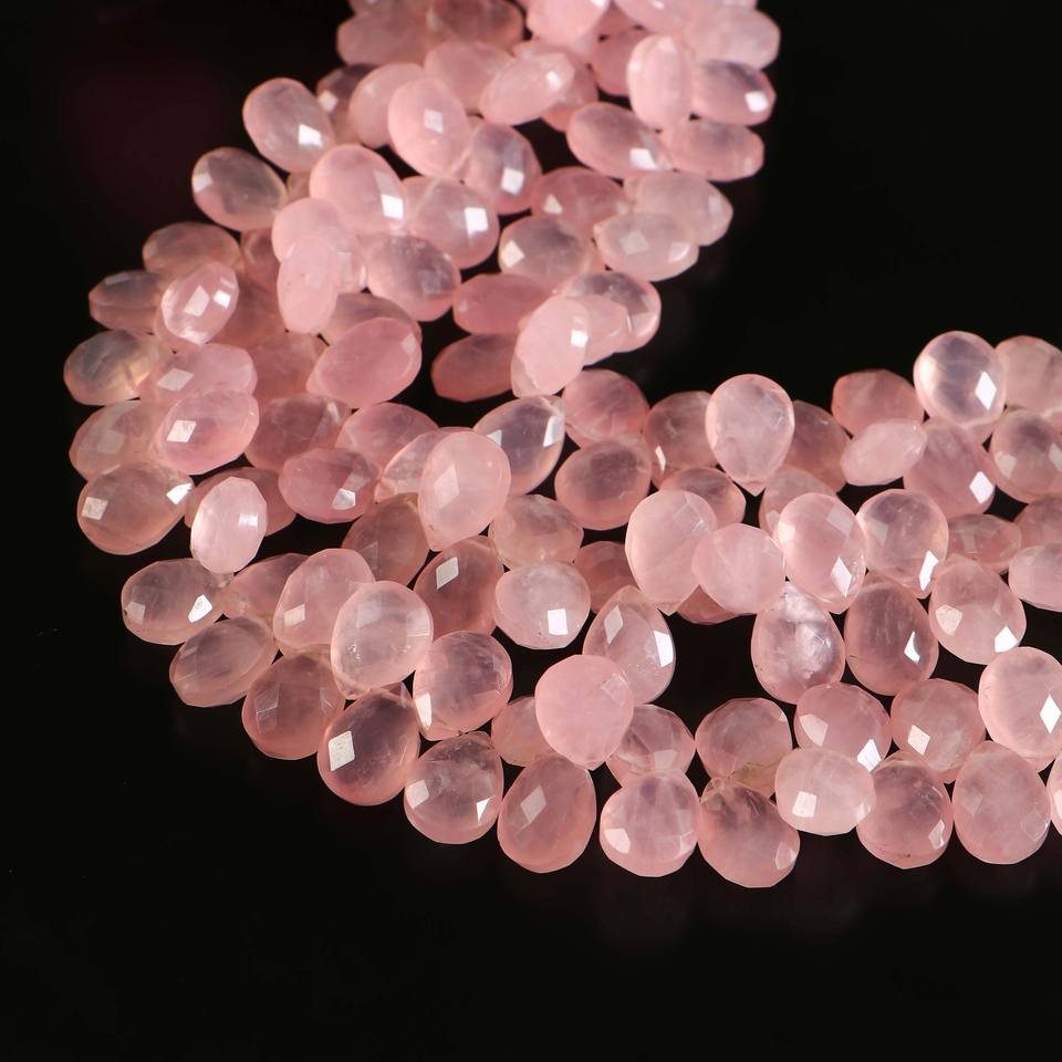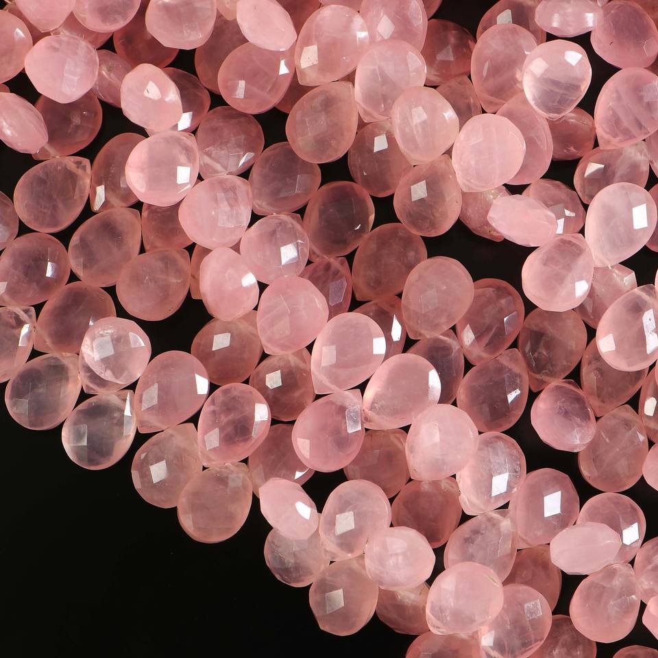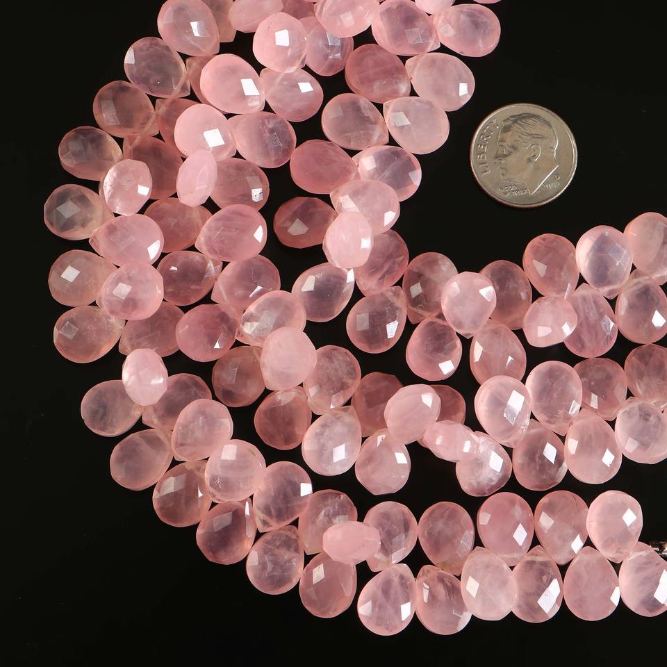 ลูกปัดโรสควอตซ์ทรงหยดน้ำเจียระไนแบบ AAA สีชมพูธรรมชาติ ขนาด 8x11-9x12 มม. ความยาว 8 นิ้ว