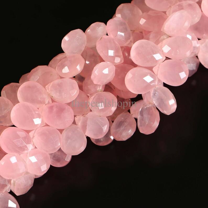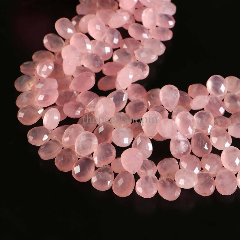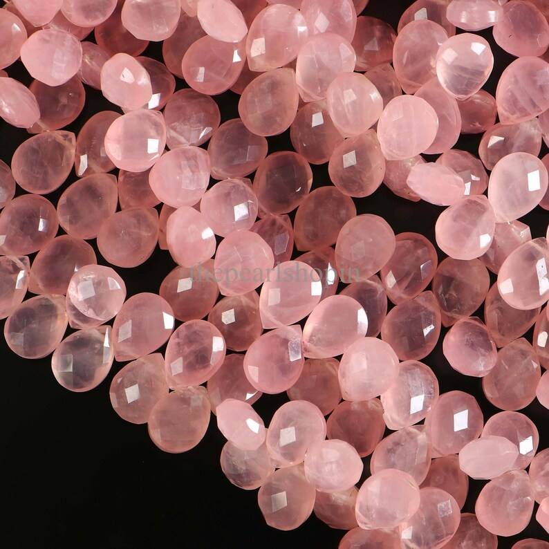 ลูกปัดโรสควอตซ์ทรงหยดน้ำเจียระไนขนาด 8x11 9x12 มม. ลูกปัดพลอยโรสควอตซ์สีชมพูธรรมชาติ ความยาว 8 นิ้ว สำหรับทำเครื่องประดับ