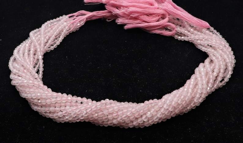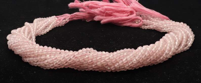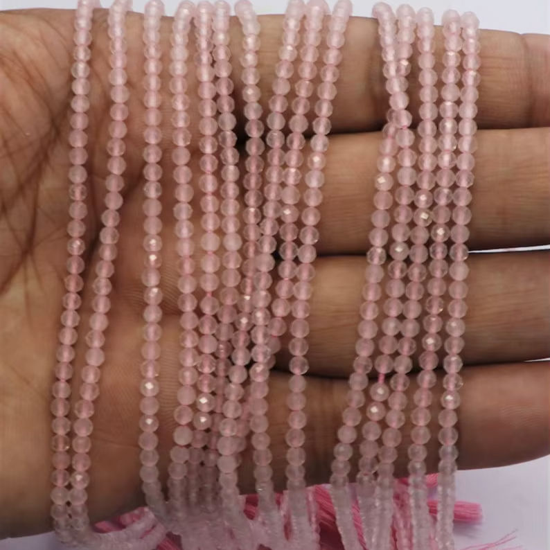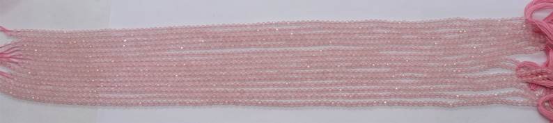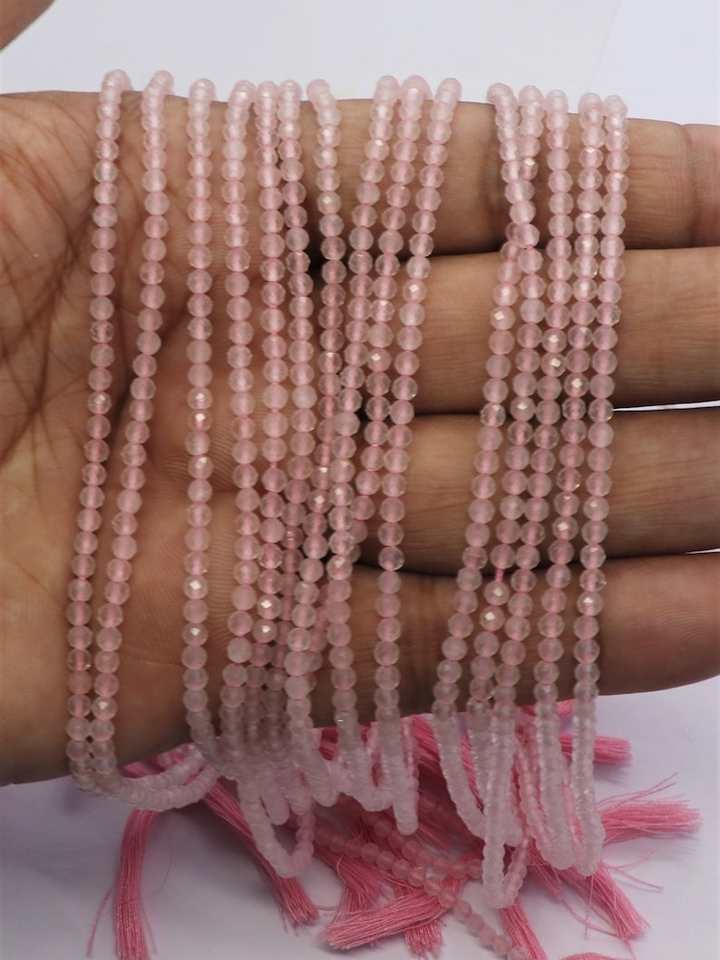 ลูกปัดโรสควอตซ์ทรงรอนเดลเหลี่ยมเพชรพลอยขนาด 3 มม. ลูกปัดพลอยโรสควอตซ์ขนาด 13 นิ้ว ลูกปัดโรสควอตซ์ทรงรอนเดลเหลี่ยมเพชรพลอยขนาดเล็กเป็นเส้น