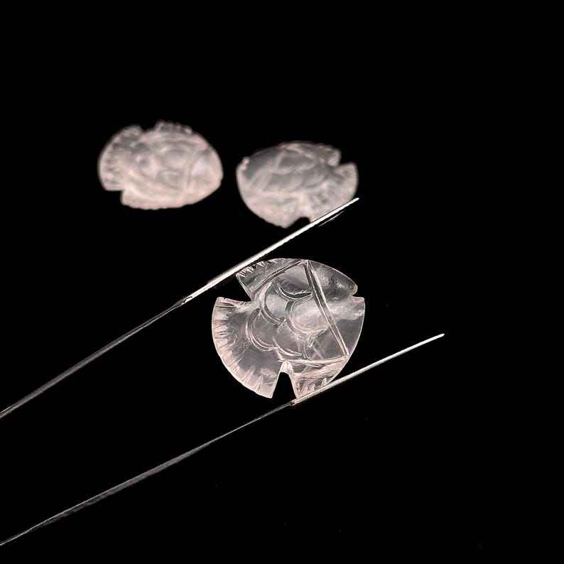 ลูกปัดหินโรสควอตซ์รูปปลาแกะสลักด้วยมือ จี้รูปปลาโรสควอตซ์ 19x21 มม. ขายส่งลูกปัดหินหลวม