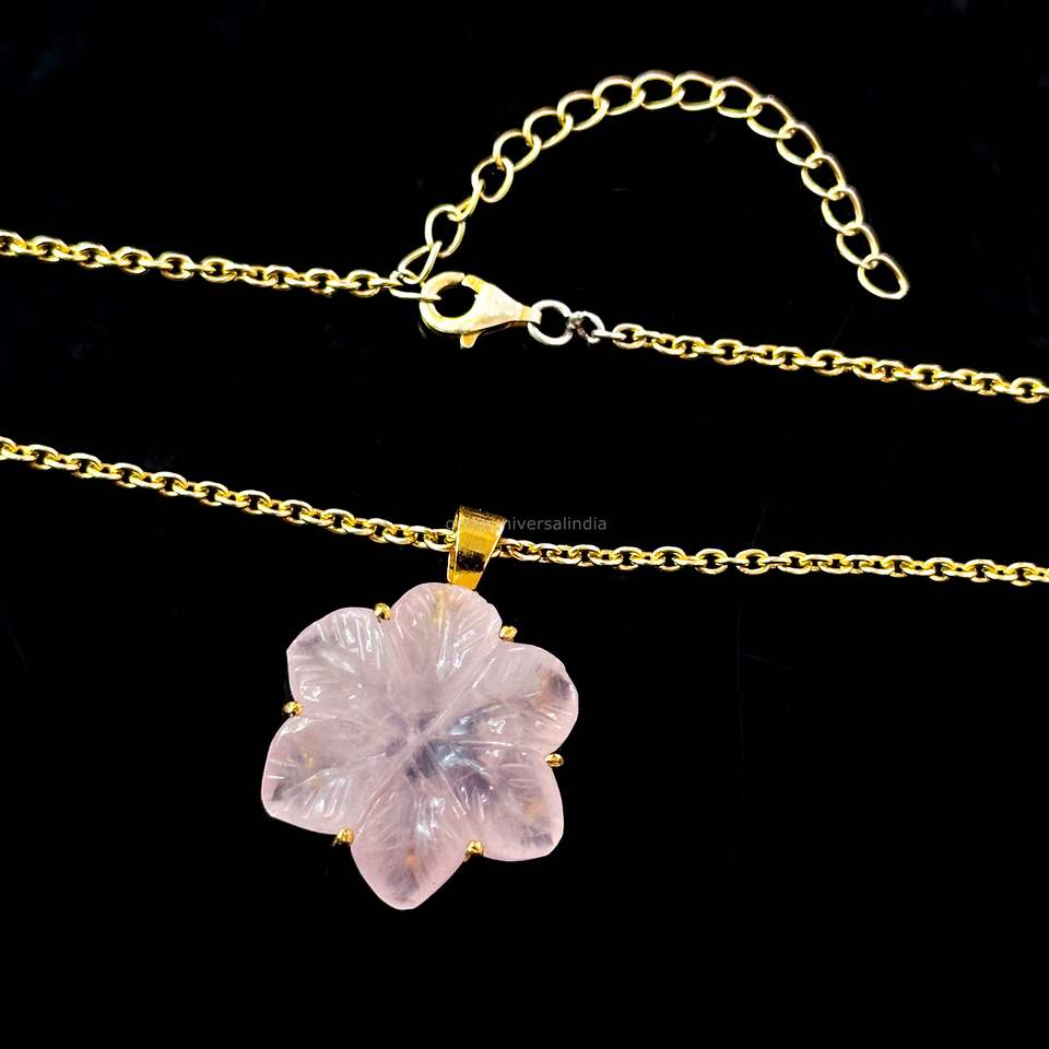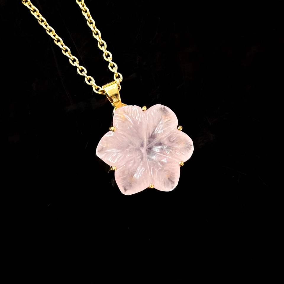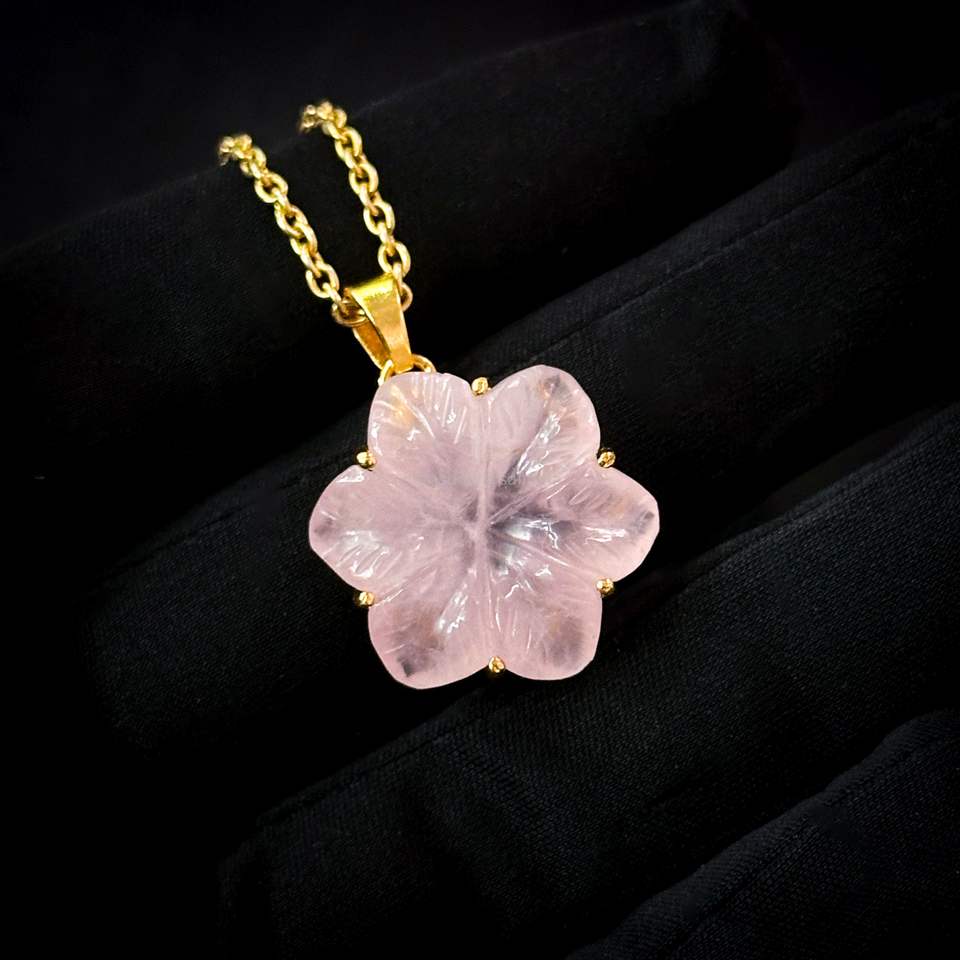 จี้ห้อยคอ รูปดอกไม้ โรสควอตซ์ธรรมชาติ