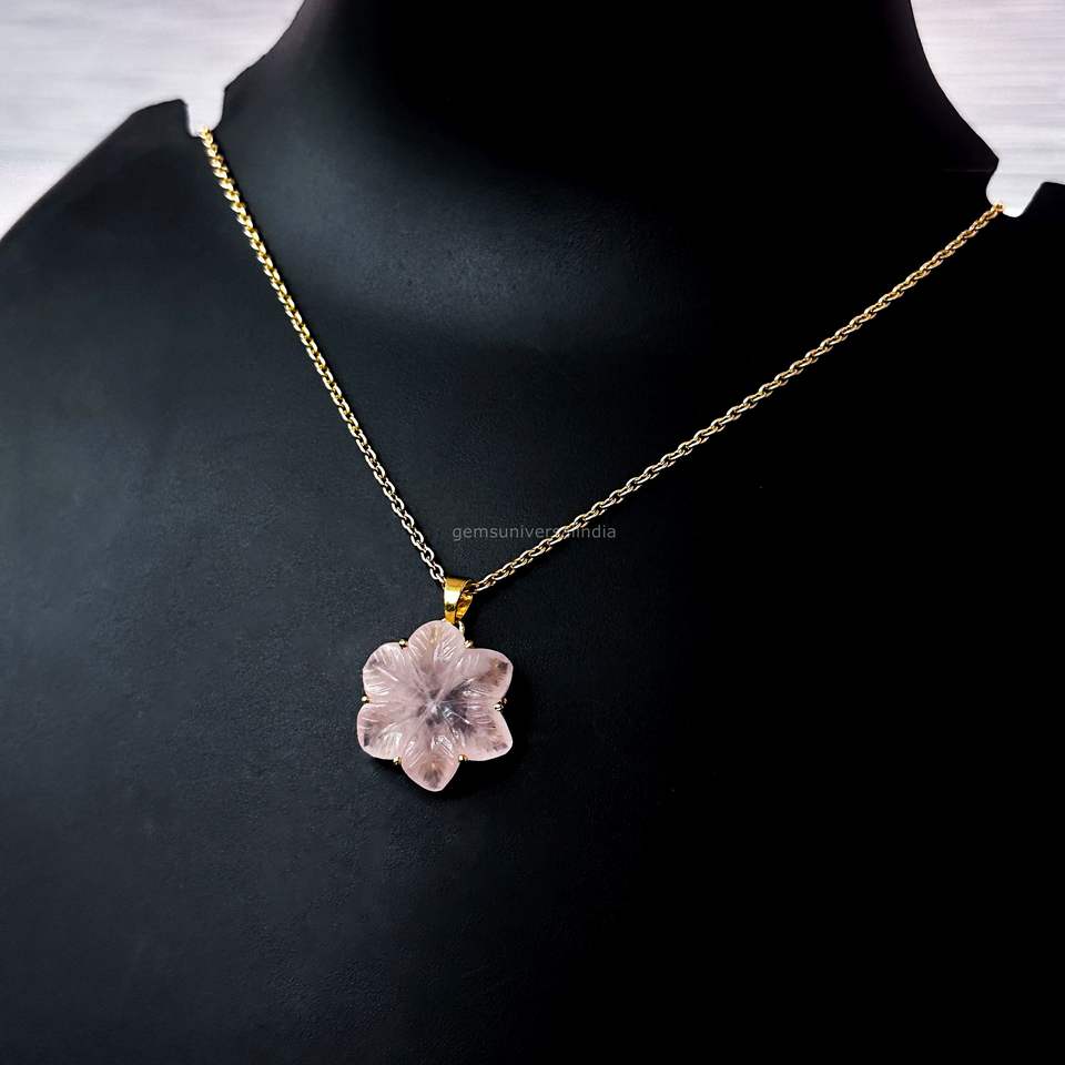 ชื่ออัญมณี:จี้ห้อยคอ รูปดอกไม้ โรสควอตซ์ธรรมชาติ