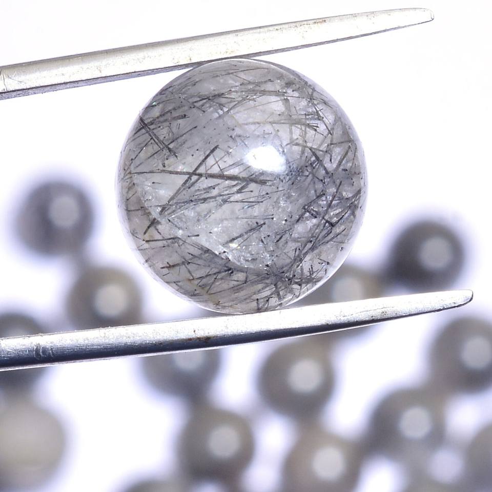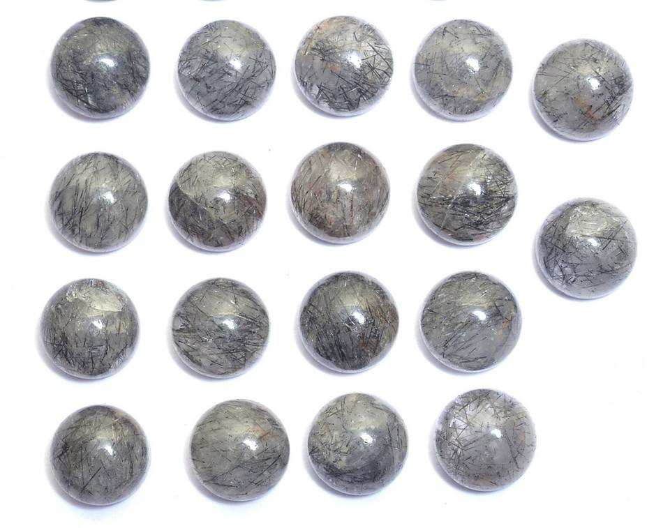 ควอตซ์รูไทล์ AAA ขนาด 12 มม. ทรงกลมเรียบ คาโบชอง หินกึ่งมีค่าธรรมชาติ รูไทล์สีดำ แบบหลวม สำหรับทำเครื่องประดับ