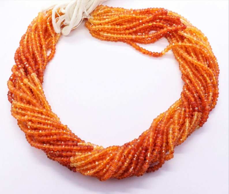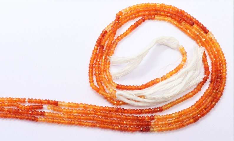 ลูกปัดคาร์เนเลียนทรงรอนเดลล์เหลี่ยมเพชรพลอย AAA ขนาด 3-3.5 มม. ลูกปัดพลอยคาร์เนเลียนธรรมชาติ 13 นิ้ว ลูกปัดคาร์เนเลียนทรงรอนเดลล์เหลี่ยมเพชรพลอย