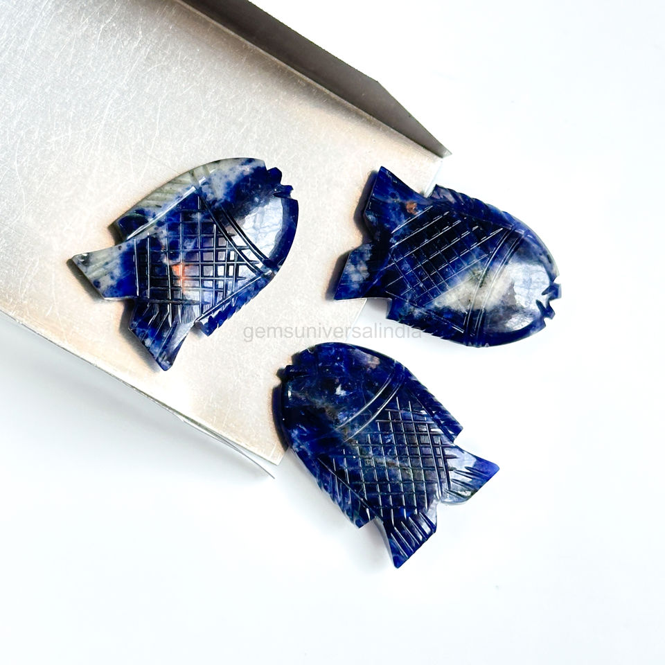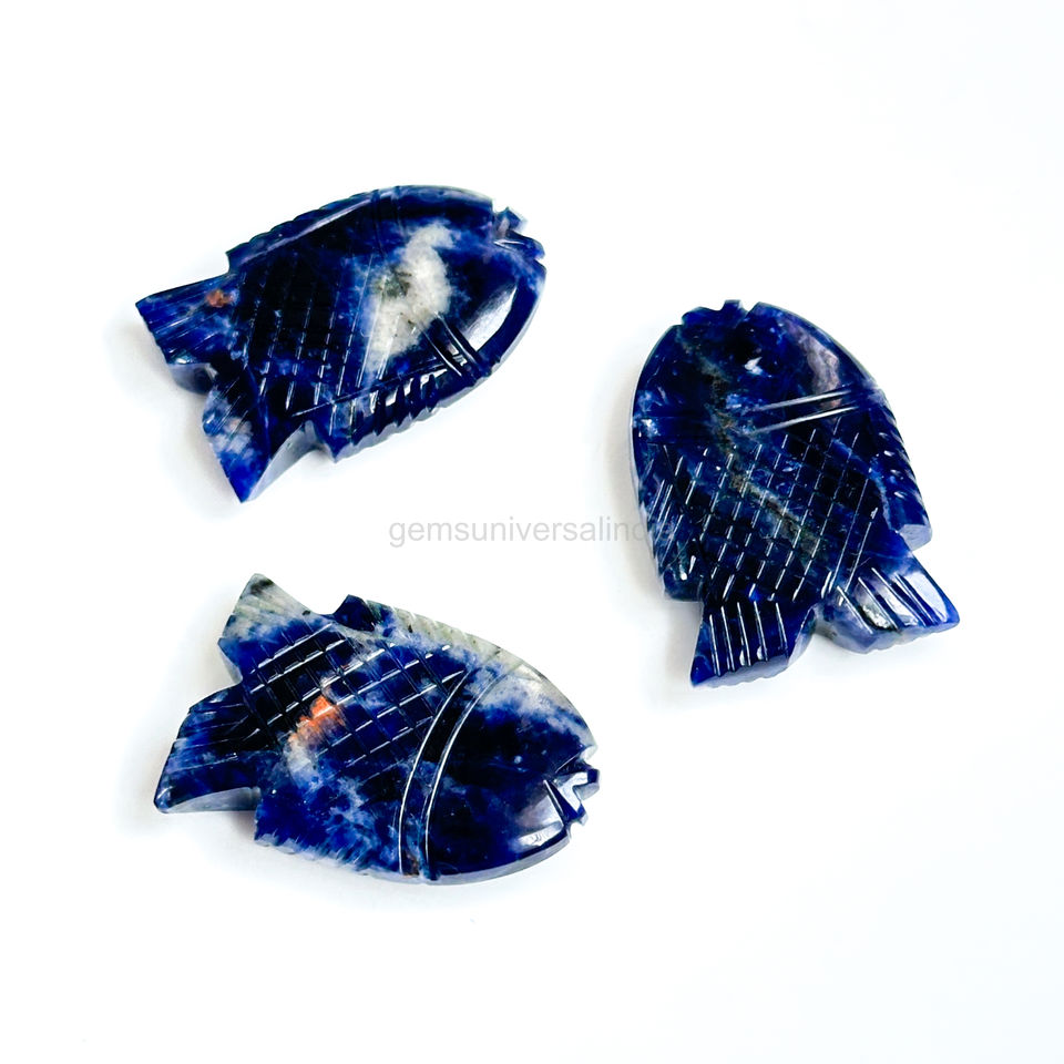 โซดาไลต์ธรรมชาติแกะสลักรูปปลา