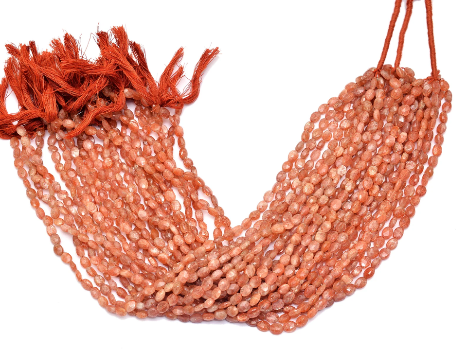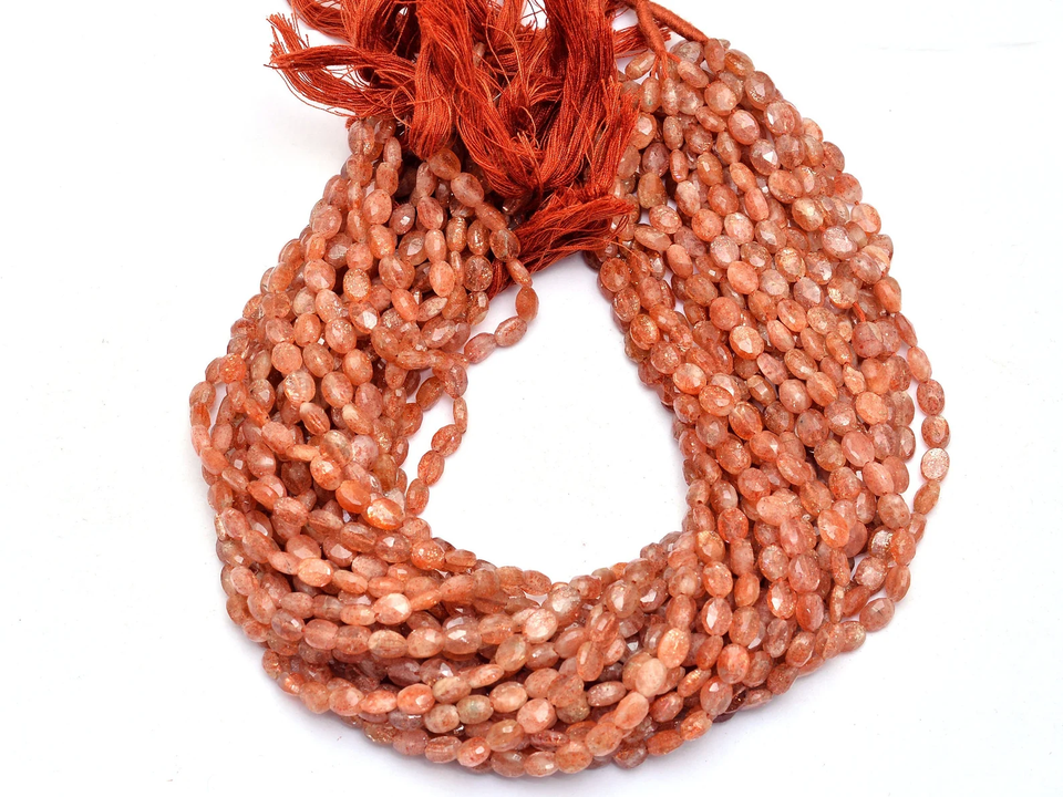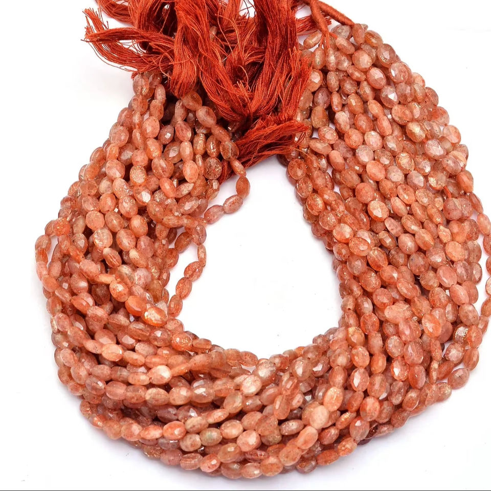 ลูกปัดพลอยซันสโตนทรงรีขนาด 7x5 มม. เกรด AAA+ พลอยซันสโตนธรรมชาติ พลอยกึ่งมีค่า สำหรับทำเครื่องประดับ