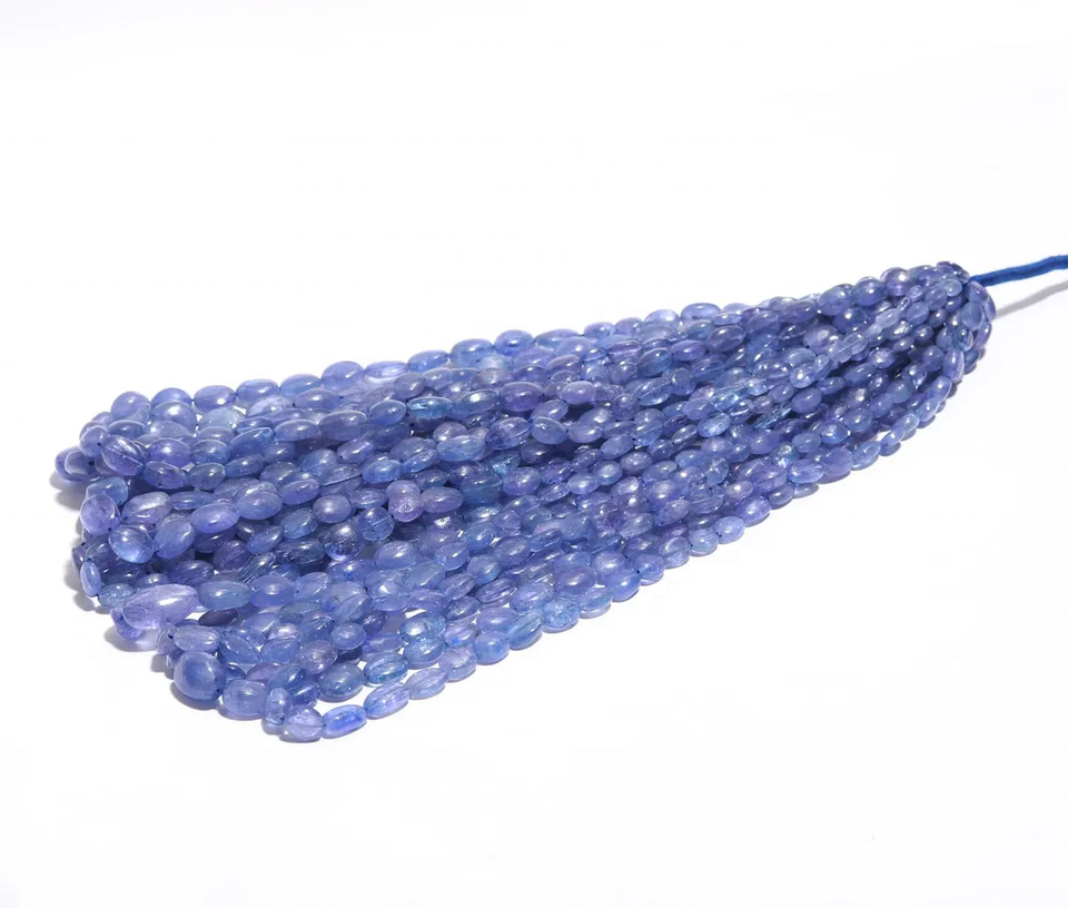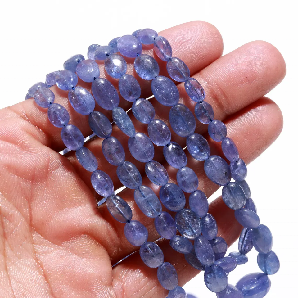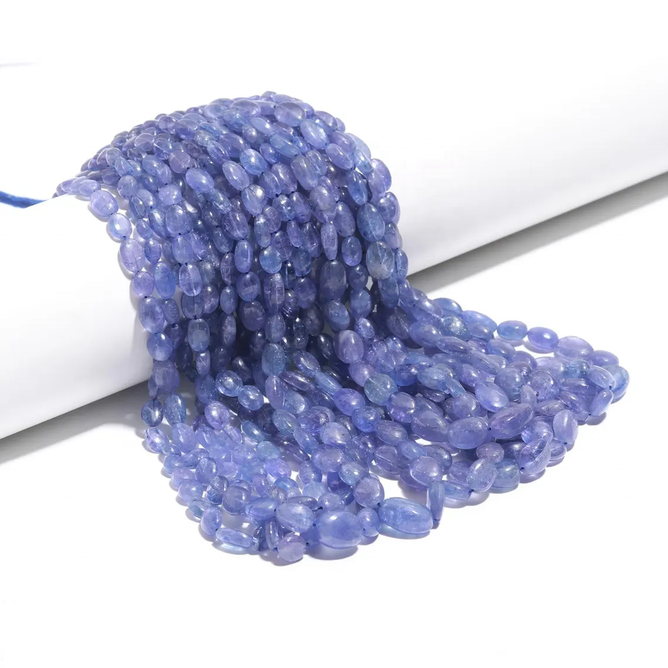 ลูกปัดแทนซาไนต์ธรรมชาติ ทรงรีเรียบ