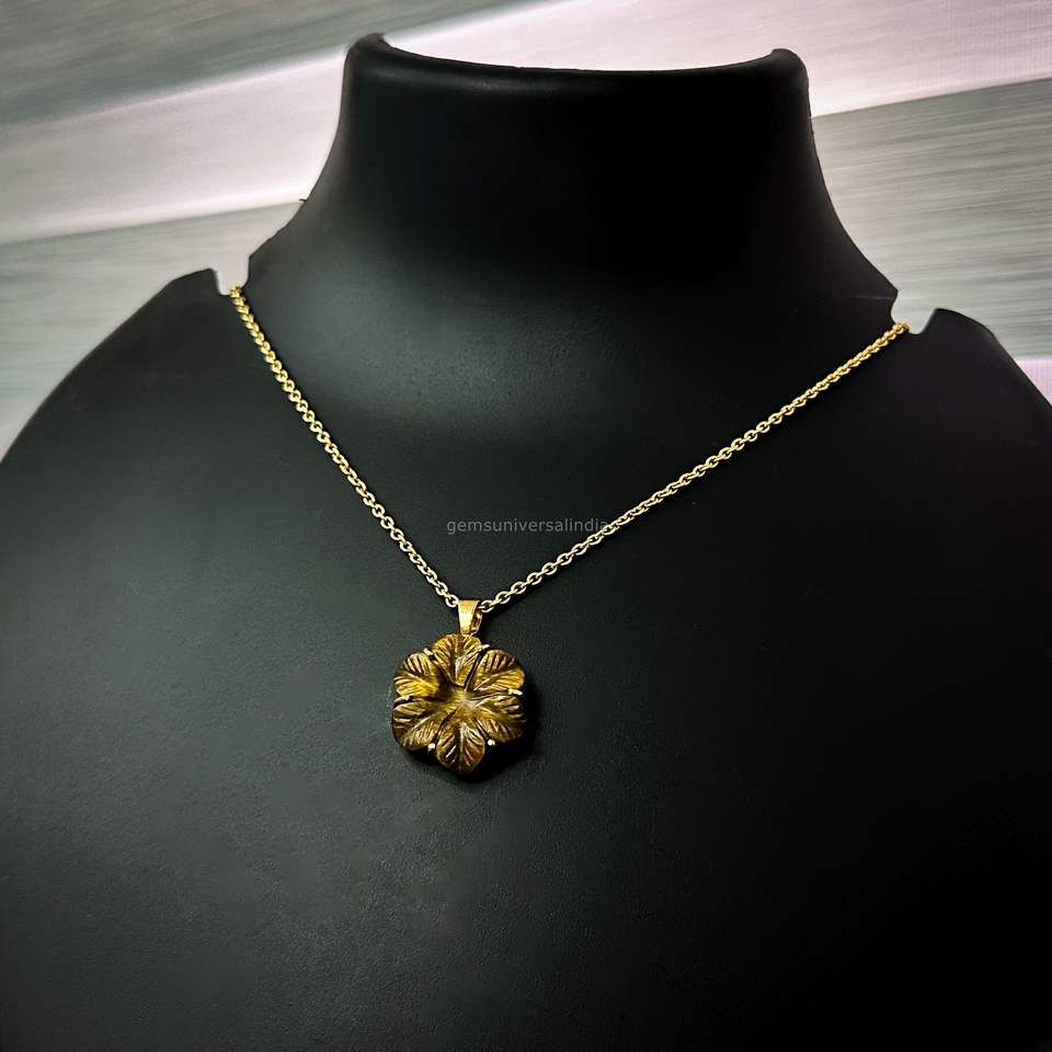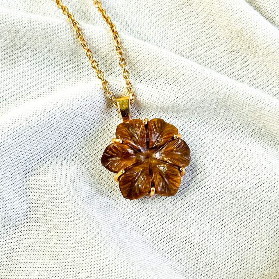 ชื่ออัญมณี:จี้ห้อยคอรูปดอกไม้หินตาเสือธรรมชาติ