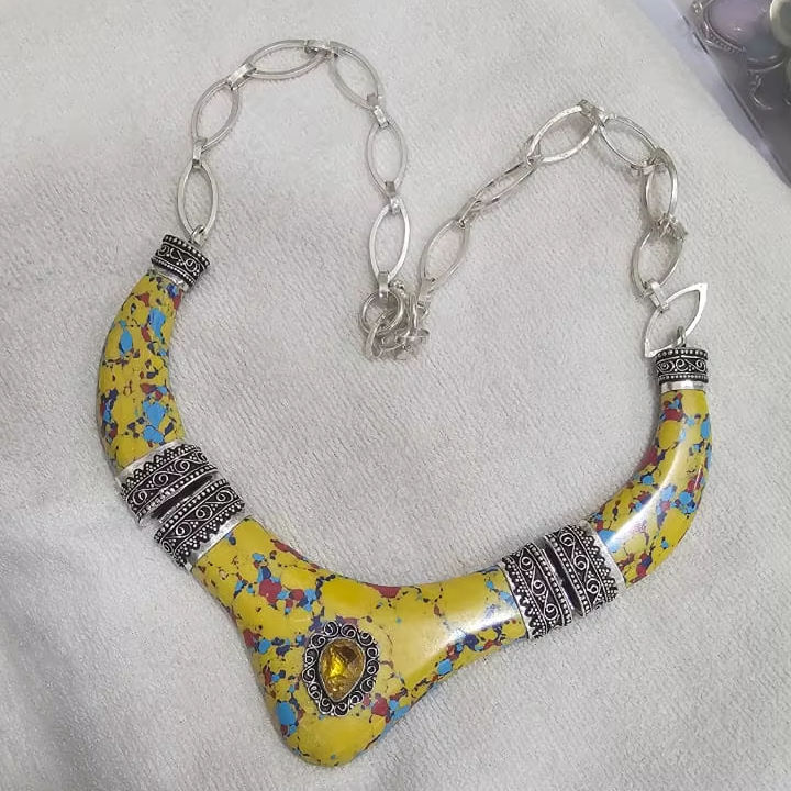 สร้อยคอสังกะสีอัลลอยผสมจากเรซินรูปเสือดาวทำด้วยมือคุณภาพที่ไม่เหมือนใครสำหรับผู้หญิงสร้อยคอชนเผ่าขนาดใหญ่สไตล์ชาติพันธุ์วิทยาตามธรรมชาติ