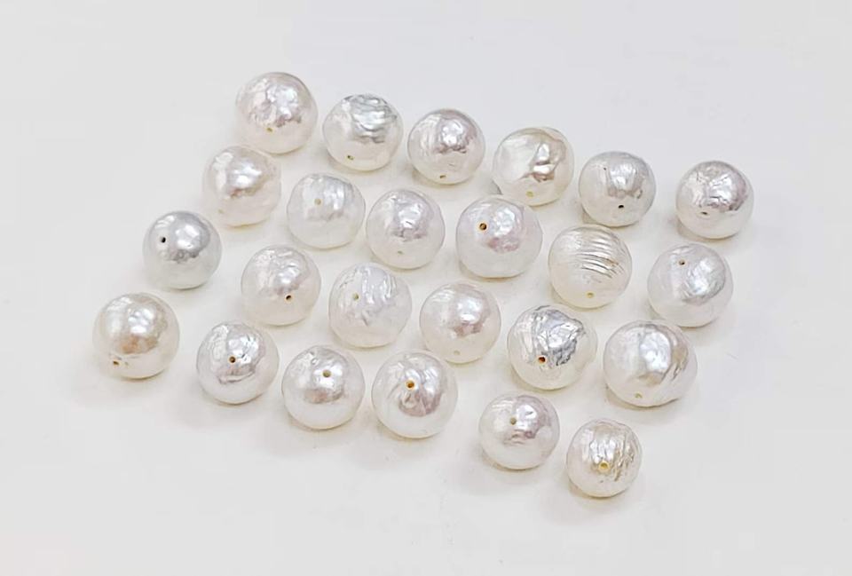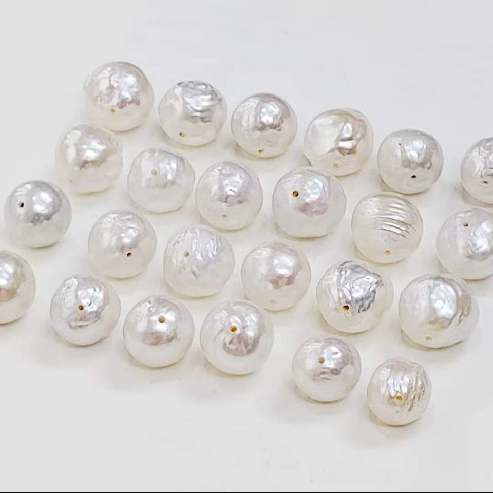 ลูกปัดมุกน้ำจืดบาโรกสีขาว AAA ทรงกลมเจาะรู ขนาด 10*10 ถึง 12*12 มม. แบบคาโบชอง อัญมณีธรรมชาติสำหรับทำเครื่องประดับ