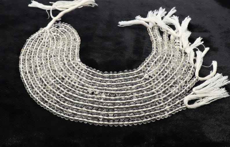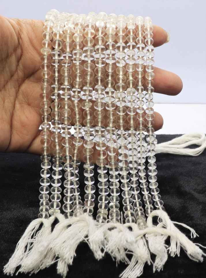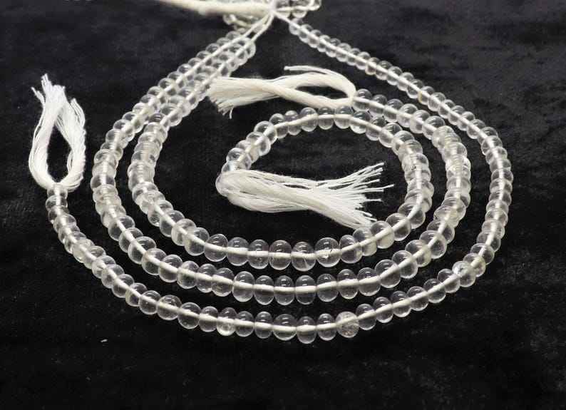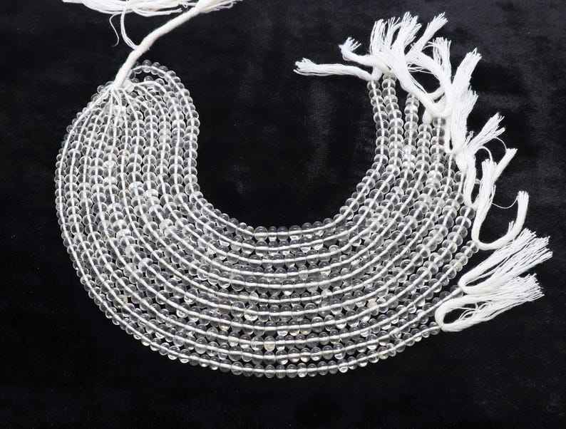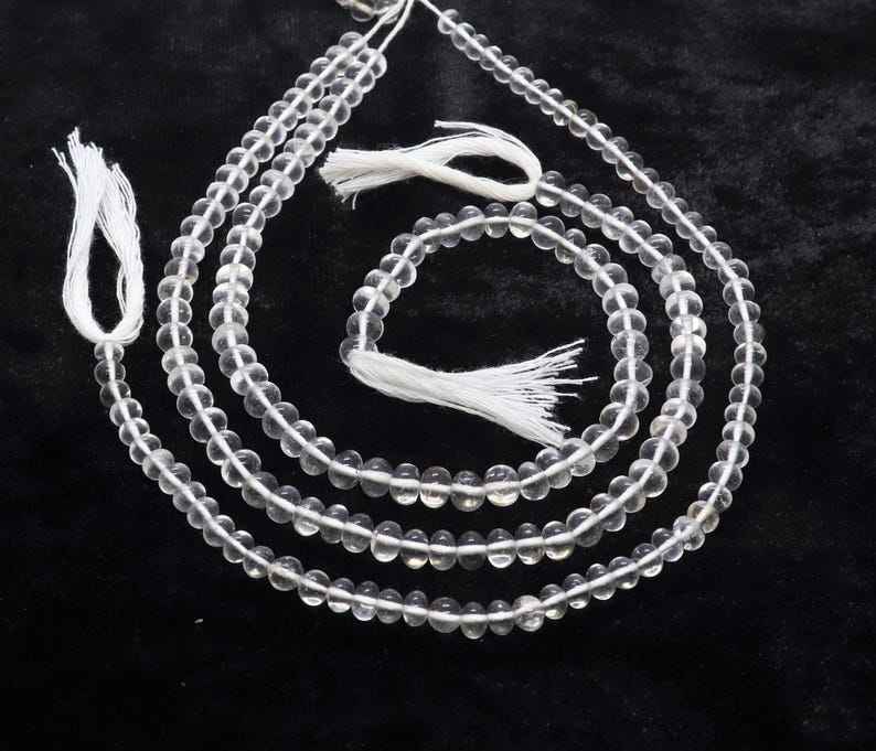 ลูกปัดคริสตัลสีขาวเรียบเนียนทรงรอนเดลล์ขนาด 5-6 มม. ลูกปัดคริสตัลทรงรอนเดลล์ขนาด 10 นิ้ว ลูกปัดคริสตัลใสธรรมชาติ