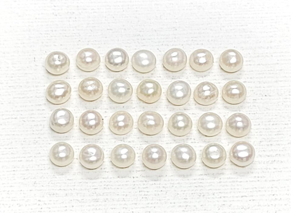 ไข่มุกน้ำจืดสีขาวทรงกลมแบบหลังเบี้ย ขนาด 2.20 มม. 2.75 มม. 3.10 มม. 3.40 - 3.50 มม. อัญมณีธรรมชาติสำหรับทำเครื่องประดับ