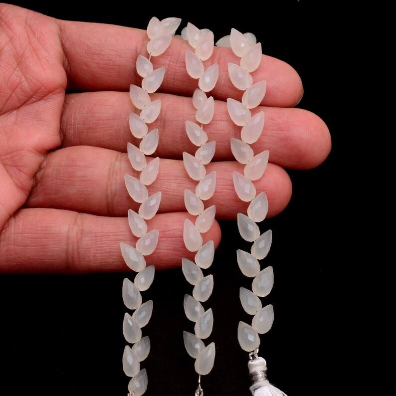 พลอยมูนสโตน AAA พลอยรูปดอกไม้สีขาว5x8mm-6x9mmTulip ตุ้มหูแบบหลวมสำหรับใส่เครื่องประดับอัญมณีมูนสโตนธรรมชาติทรงหยดน้ำแฟนซี