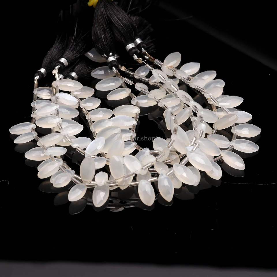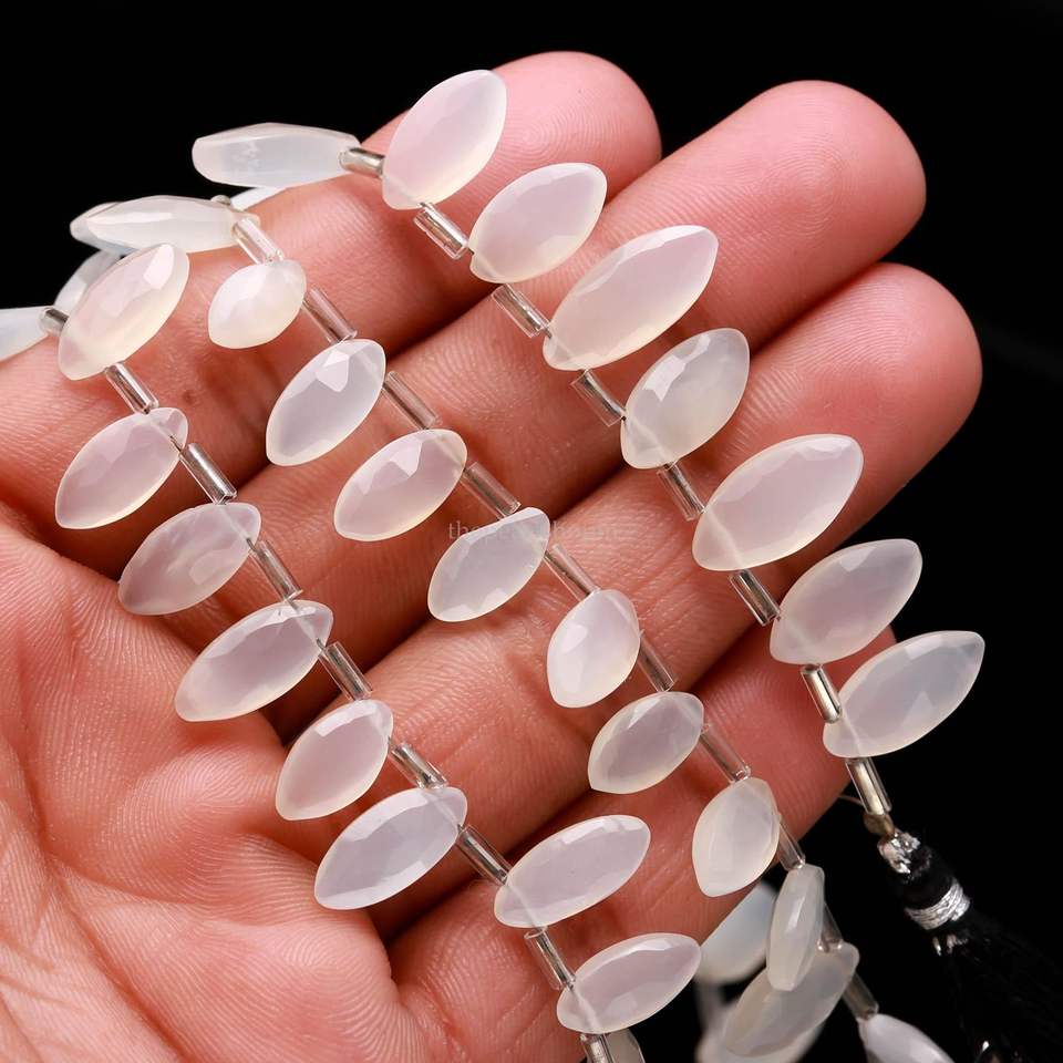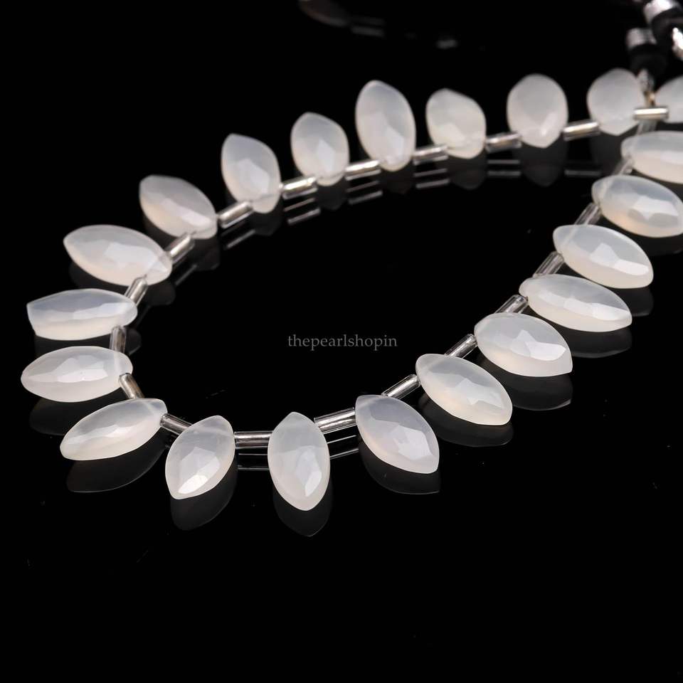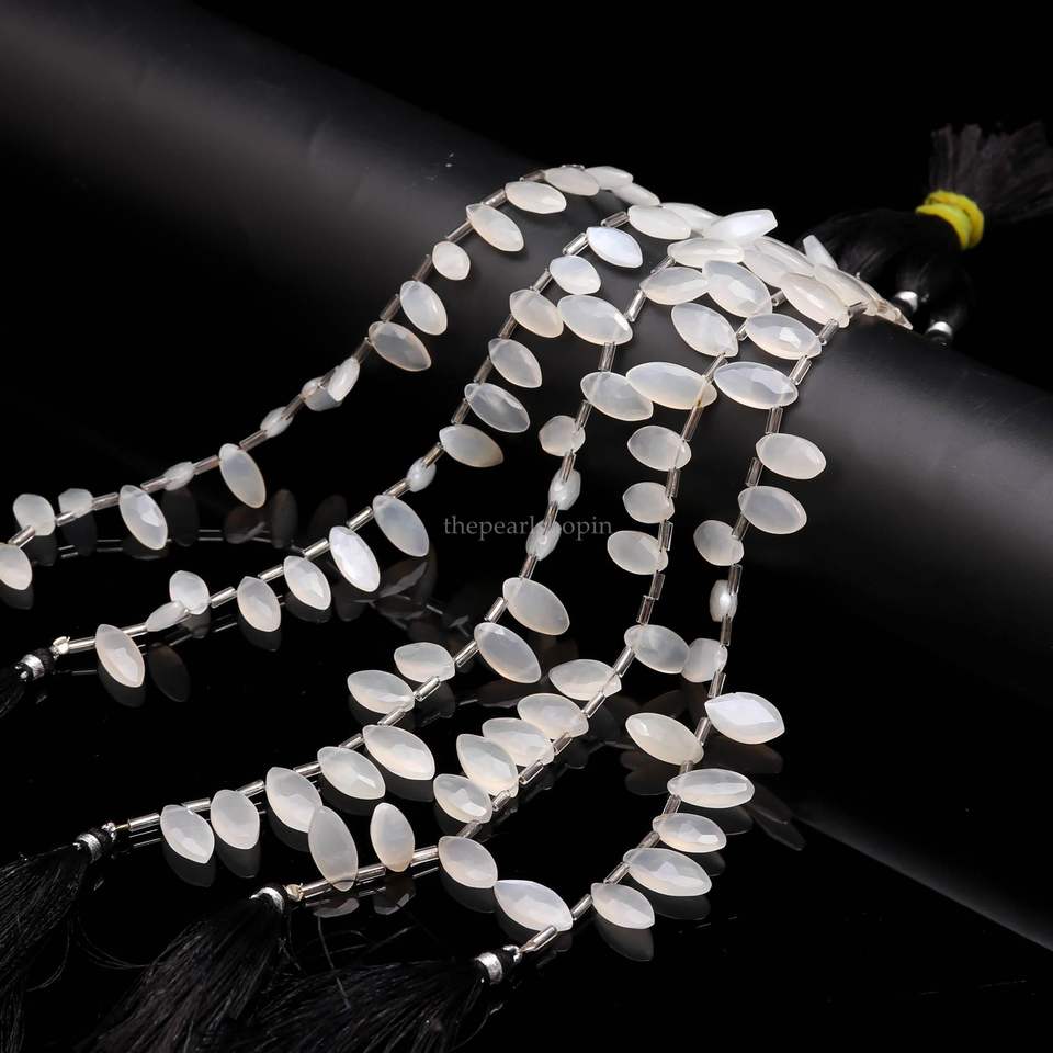 ลูกปัดมูนสโตนสีขาวทรงมาร์คีสเจียระไน ลูกปัดมูนสโตนสีขาวธรรมชาติเจาะด้านข้าง ขนาด 7x12-8x13 มม. สำหรับทำเครื่องประดับ