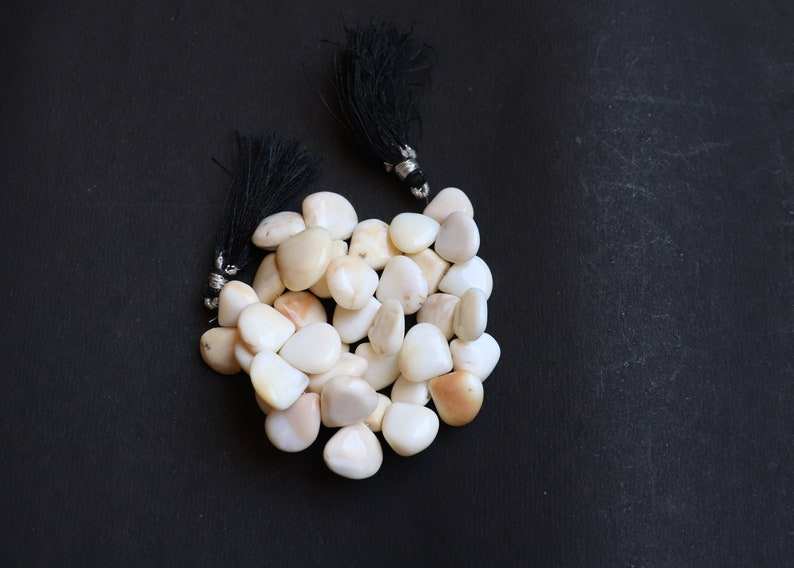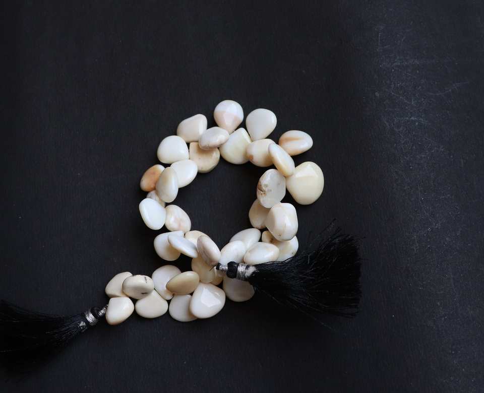 ลูกปัดโอปอลสีขาวธรรมชาติทรงหัวใจเรียบ