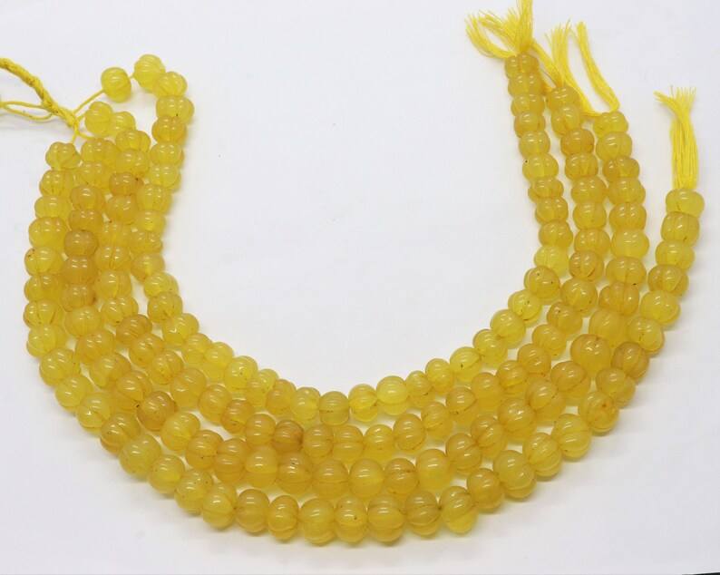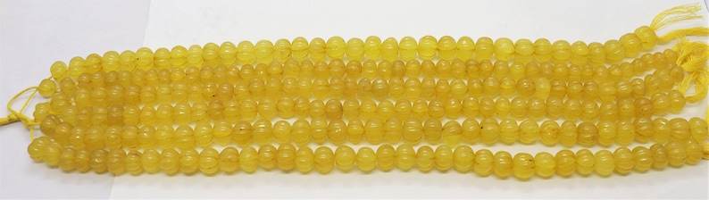 ลูกปัดควอตซ์สีเหลืองแกะสลักรูปฟักทองขนาด 9-11 มม. ลูกปัดควอตซ์สีเหลืองรูปทรงฟักทองทรงรอนเดลล์สำหรับทำเครื่องประดับขายส่ง