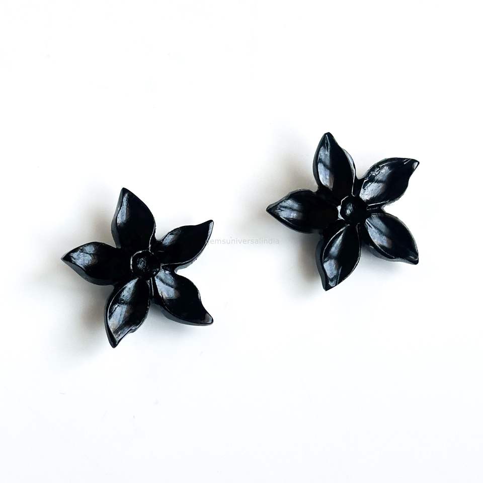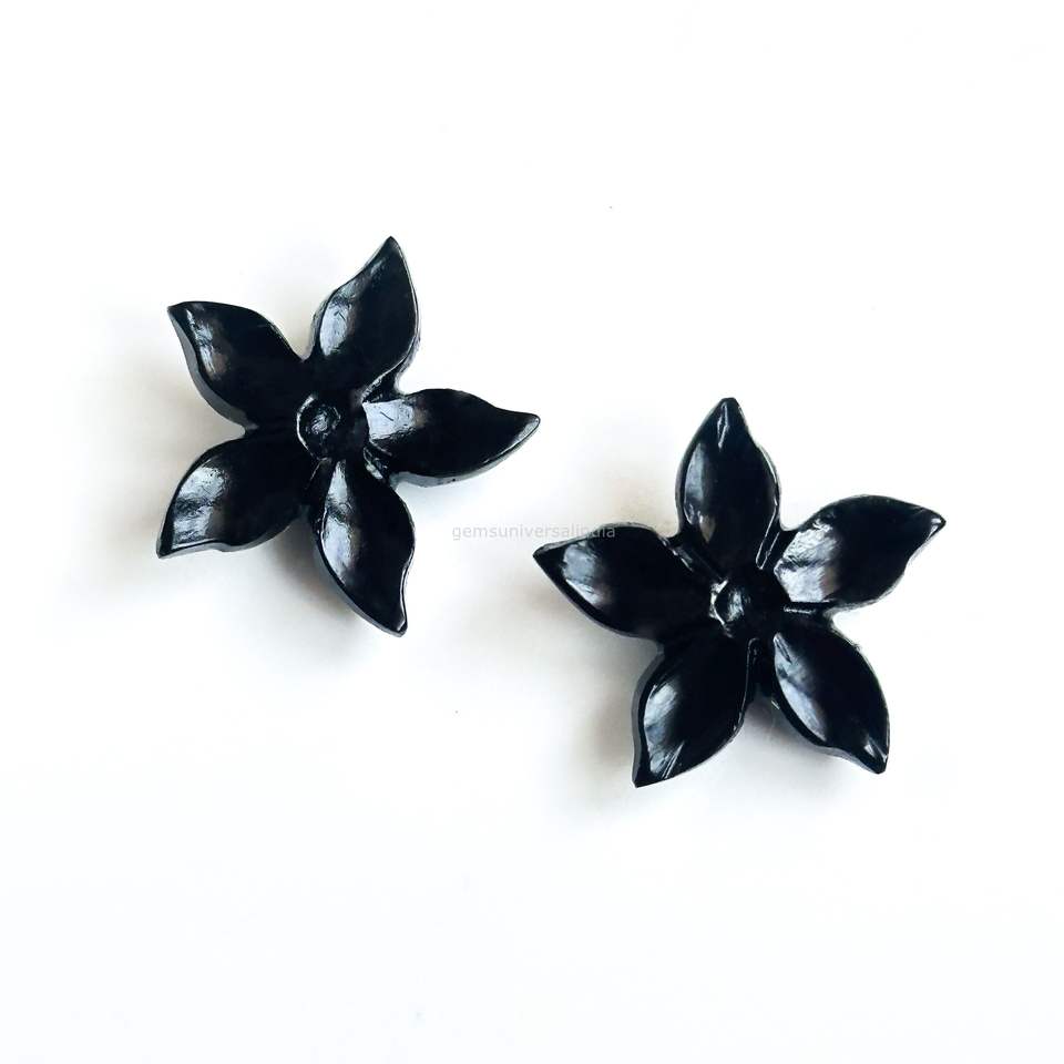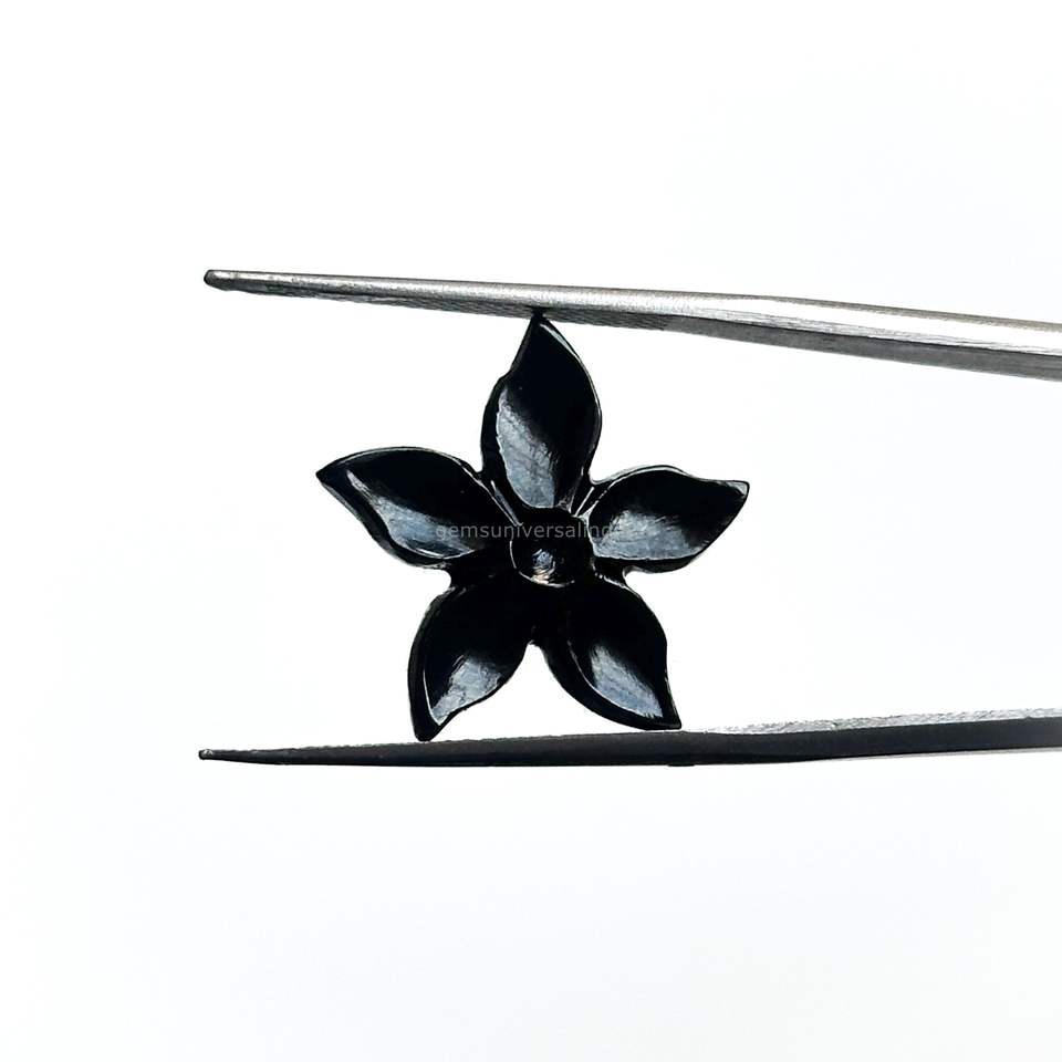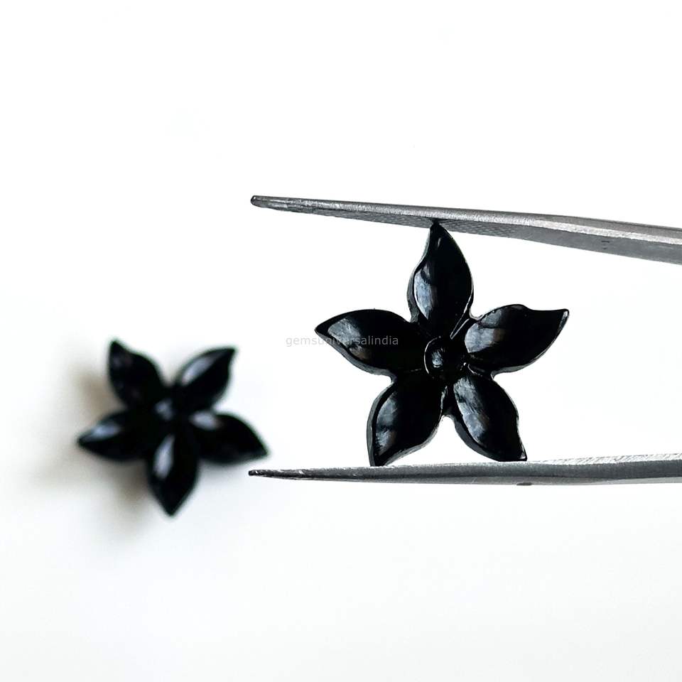 หินออนิกซ์สีดำธรรมชาติรูปดอกไม้แกะสลักด้วยมือขนาด 18 มม. จี้คริสตัลรูปดอกไม้สำหรับทำเครื่องประดับขายส่งจำนวนมาก