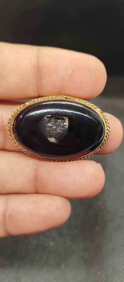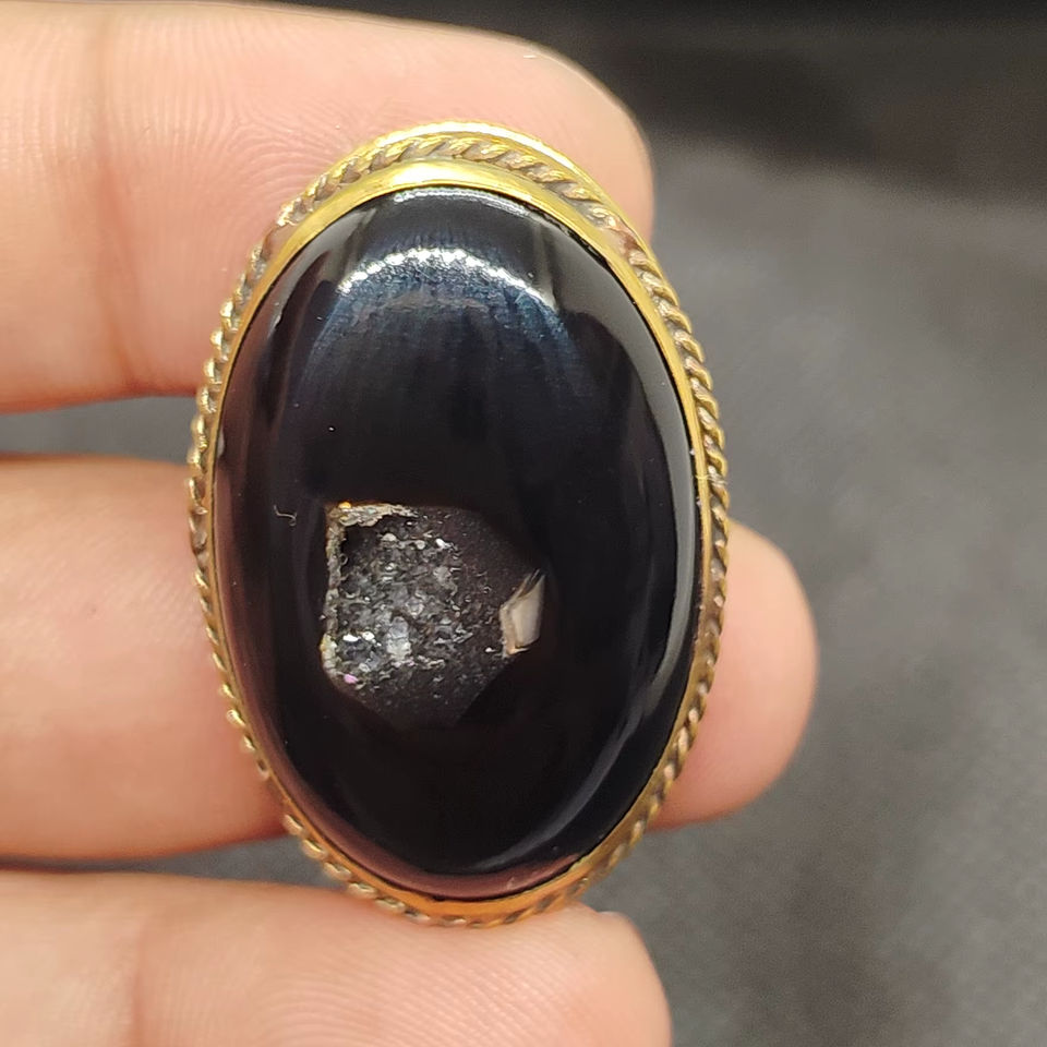 AAAAA Quality Natural Mixed Stone Grooved Pendants Black Druzy Brass Metal Stones Charms