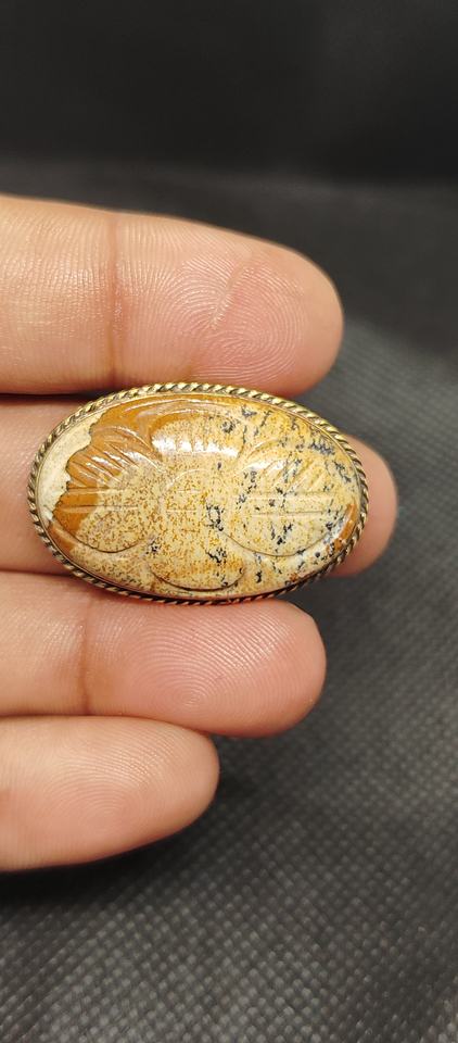 จี้หินธรรมชาติคุณภาพเยี่ยมแบบผสมผสาน ลายร่อง หินแจสเปอร์ภาพพิมพ์ ตัวเลือกของช่างอัญมณี พร้อมโลหะทองเหลือง